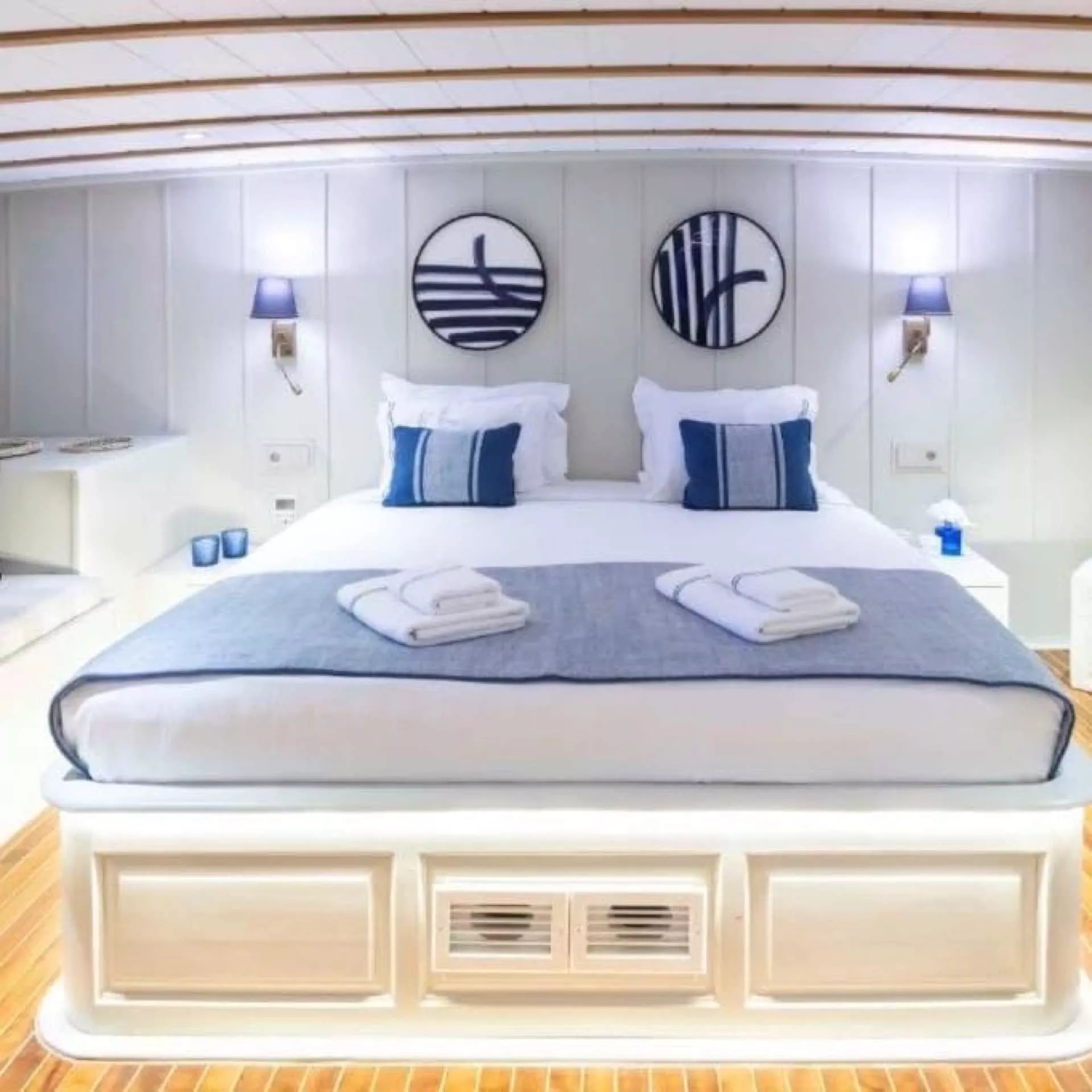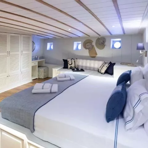 6 cabins; 2 master, 2 large double, 2 large triple cabins, all en-suite.
