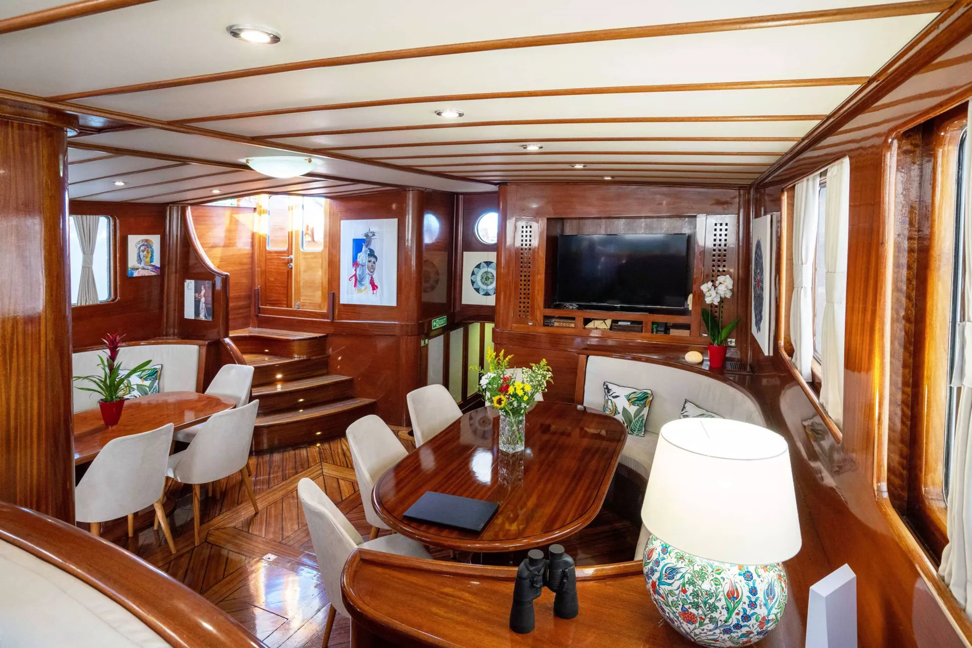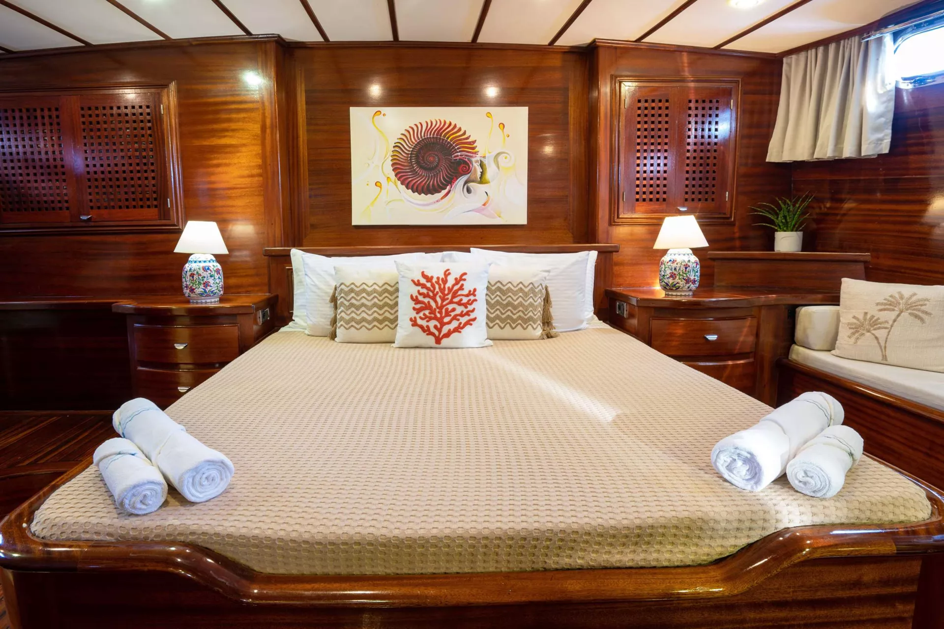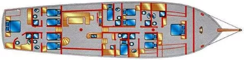 A Luxury large 39 meter Schooner Gulet for 12 guest equipped with 6 cabins (2 vip master, 4 twin), each with private bathroom, cubical shower and air conditioning.