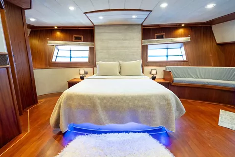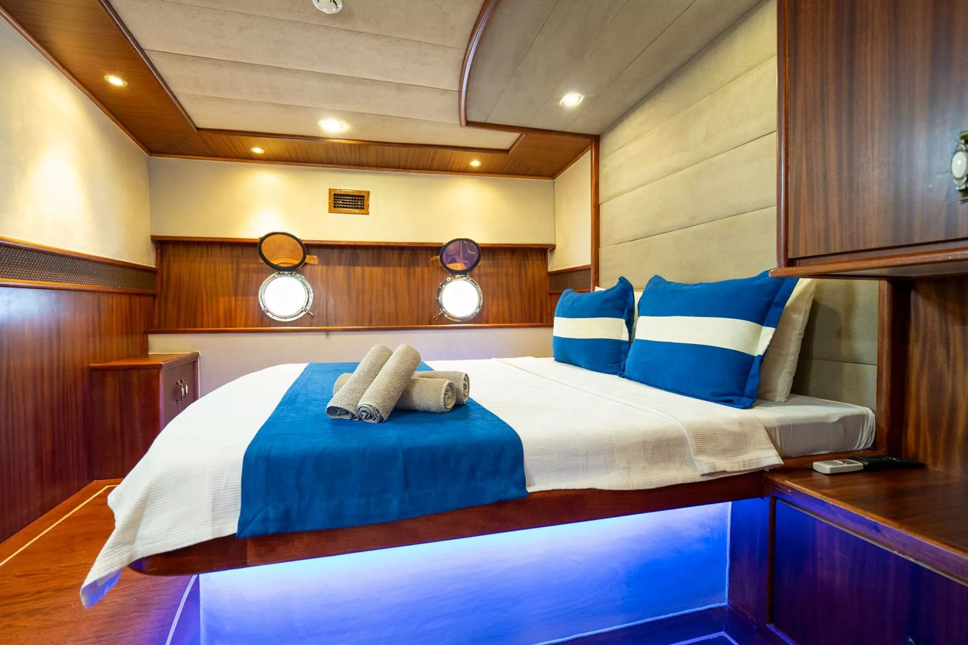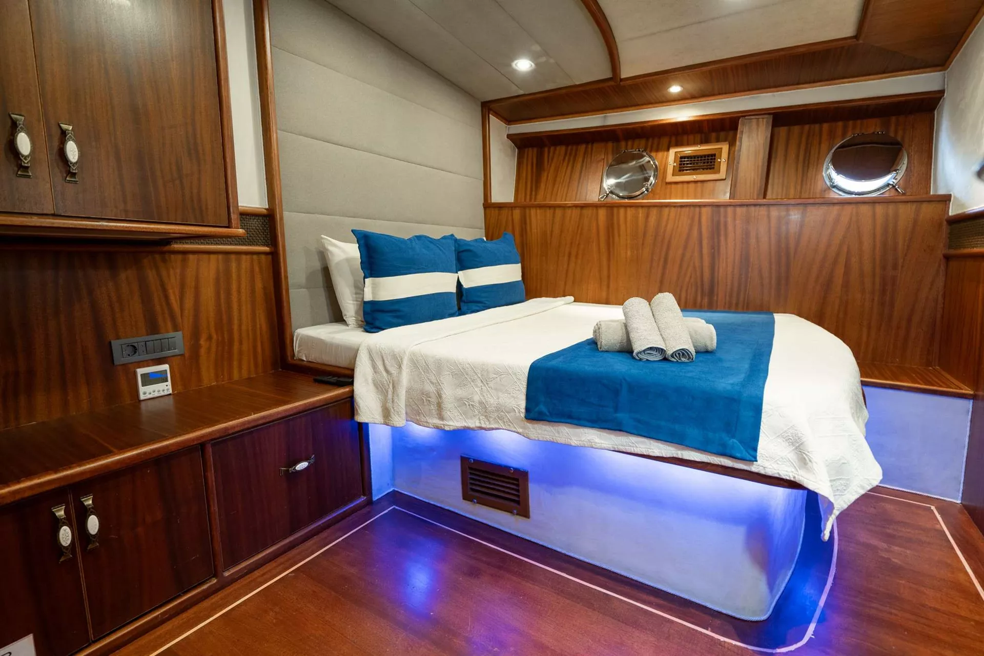 Included: hire of the yacht, crew, port fees in Turkish waters (private marinas not included), 4 hours/day fuel for main engines, fuel for generators.