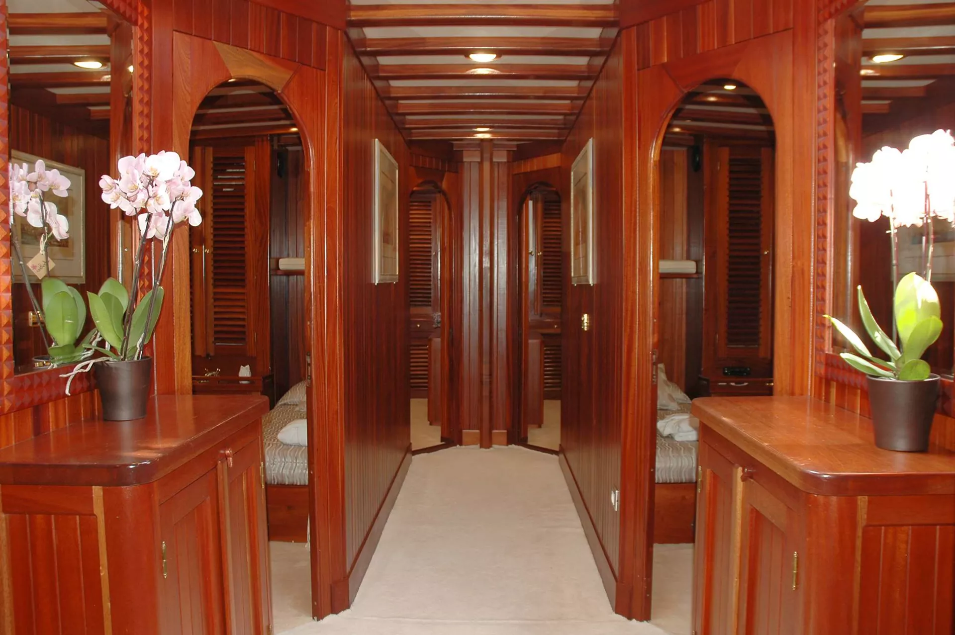 From the first time you board MATINA, this beautiful 125ft wooden motor sailer with her immense beam and large teak deck, you know you will have a dream holiday. You will be impressed by the ample space for sunbathing and relaxing on large cushions, the spacious interior rich with mahogany and warm colors and her smooth sailing.