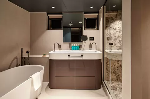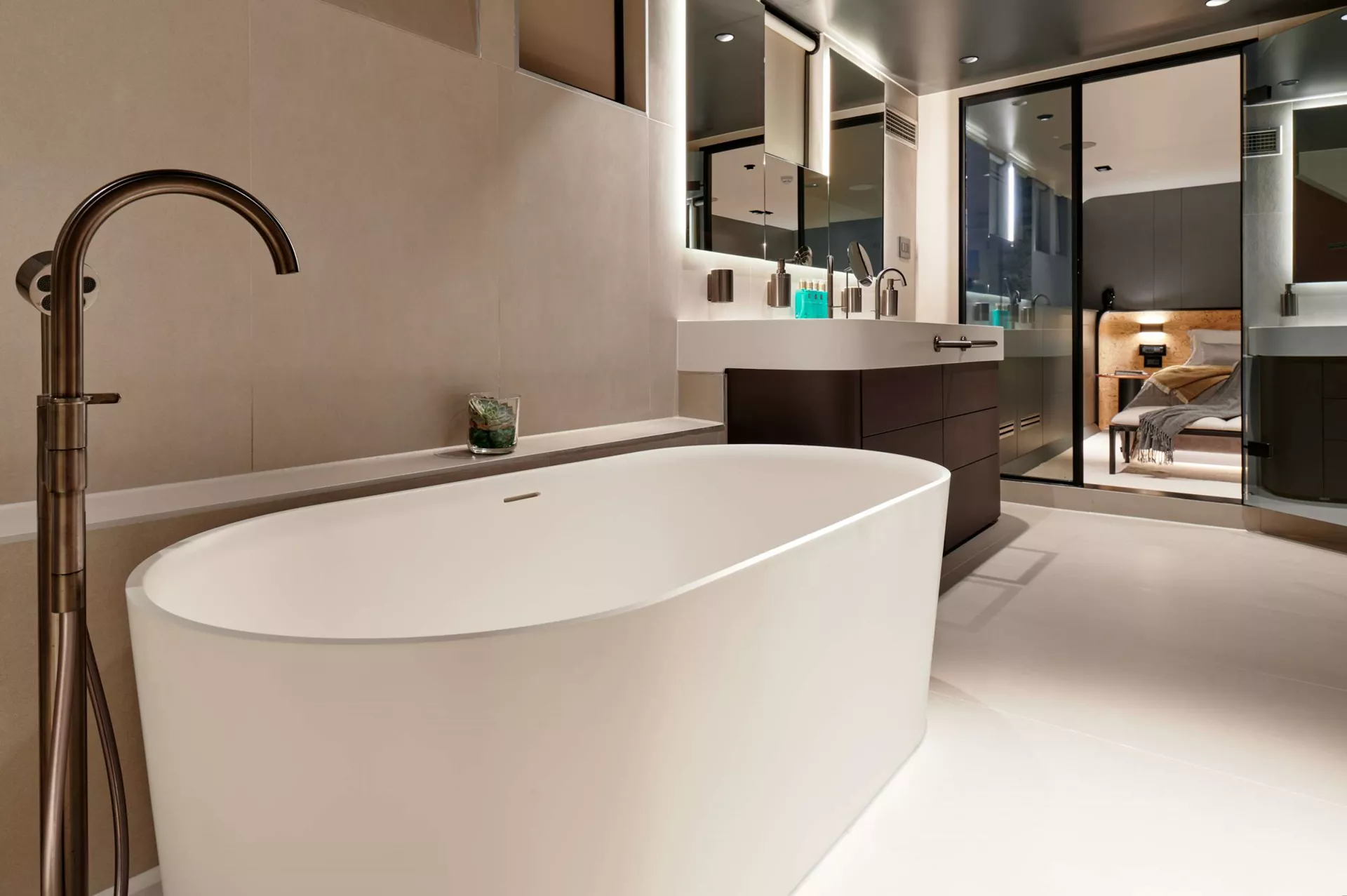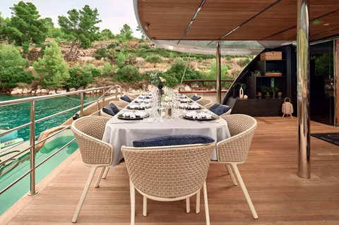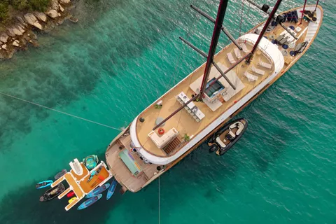 Anetta boasts a plethora of opulent features, including two remarkable pools. The sun deck's glass-bottom jacuzzi bathes the interior dining area in natural light, creating a truly magnificent ambience. The second pool on the main deck aft seamlessly blends with an expansive swim platform, creating an alfresco beach club feeling, offering the ultimate relaxation. With a highly-trained and professional crew of 8, a luxury yacht vacation onboard motor sailer Anetta promises to be nothing short of spectacular.