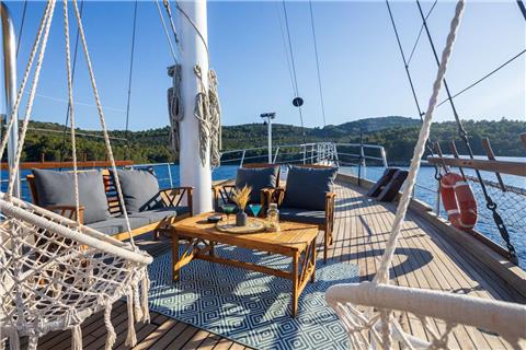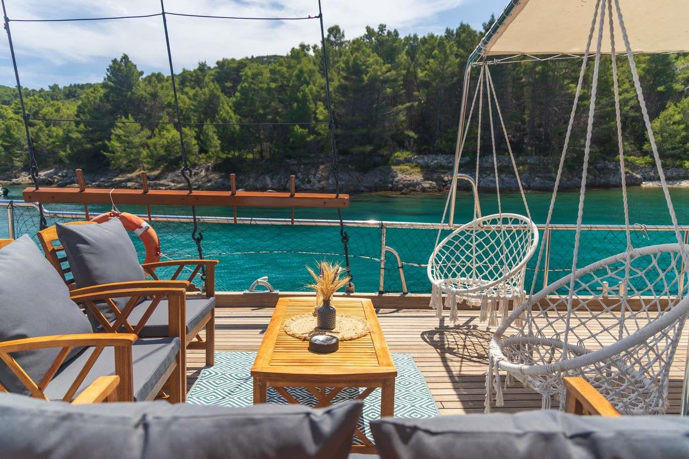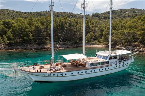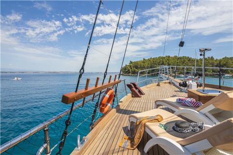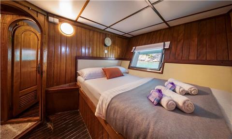 Gulet Gideon is one of the largest gulets available for private cruising in Croatia. It can accommodate up to 16 guest in 8 double cabins. Every cabin is equipped with 220v electricity, air-conditioning, wardrobe, two bathroom towels and one beach towel (per person). All guest cabins have access to the private bathroom.