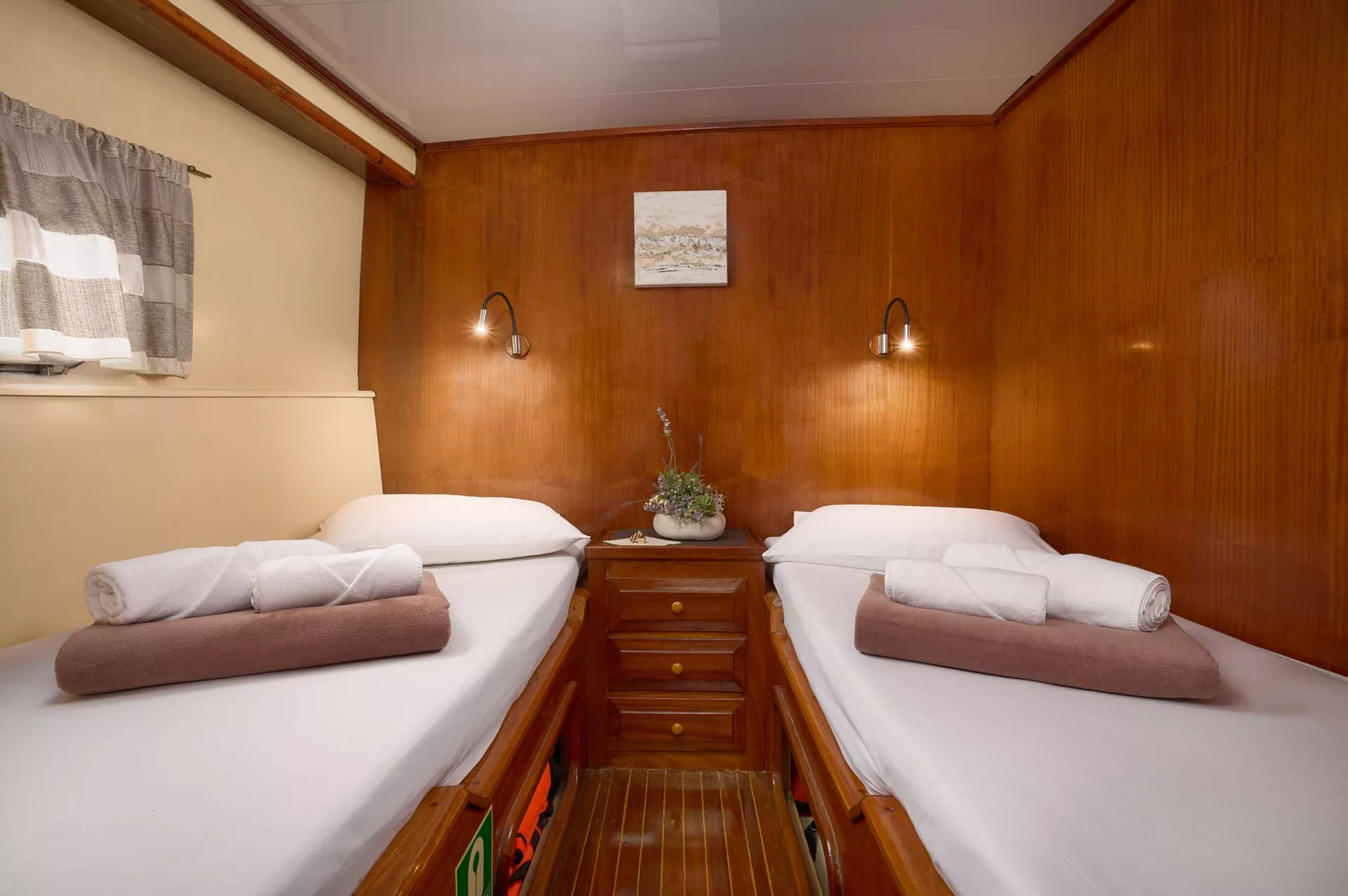 Agora offers accommodation for 12 guests in 6 ensuite and air-conditioned cabins (5 double and 1 twin).