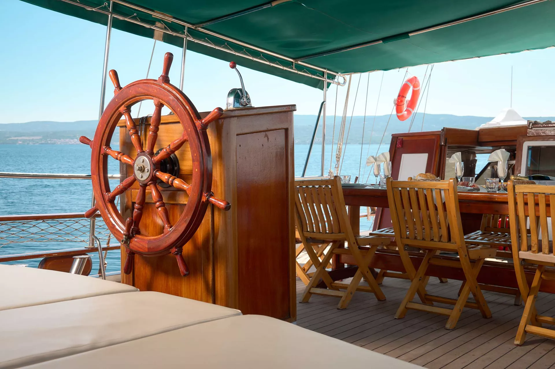 Gulet Agora, owned by the experienced Ercegović family, accommodates up to 12 guests in 6 air-conditioned cabins. Built in 2002 and refitted in 2020, this 29-meter yacht offers spacious decks and a variety of water sports. Perfect for sailing, biking tours, wine tastings, or team events. A refined blend of elegance and relaxed maritime charm.