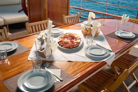 - Drinks/beverages are to be taken from the yacht bar and paid for according to consumption (in cash at the end of the cruise)