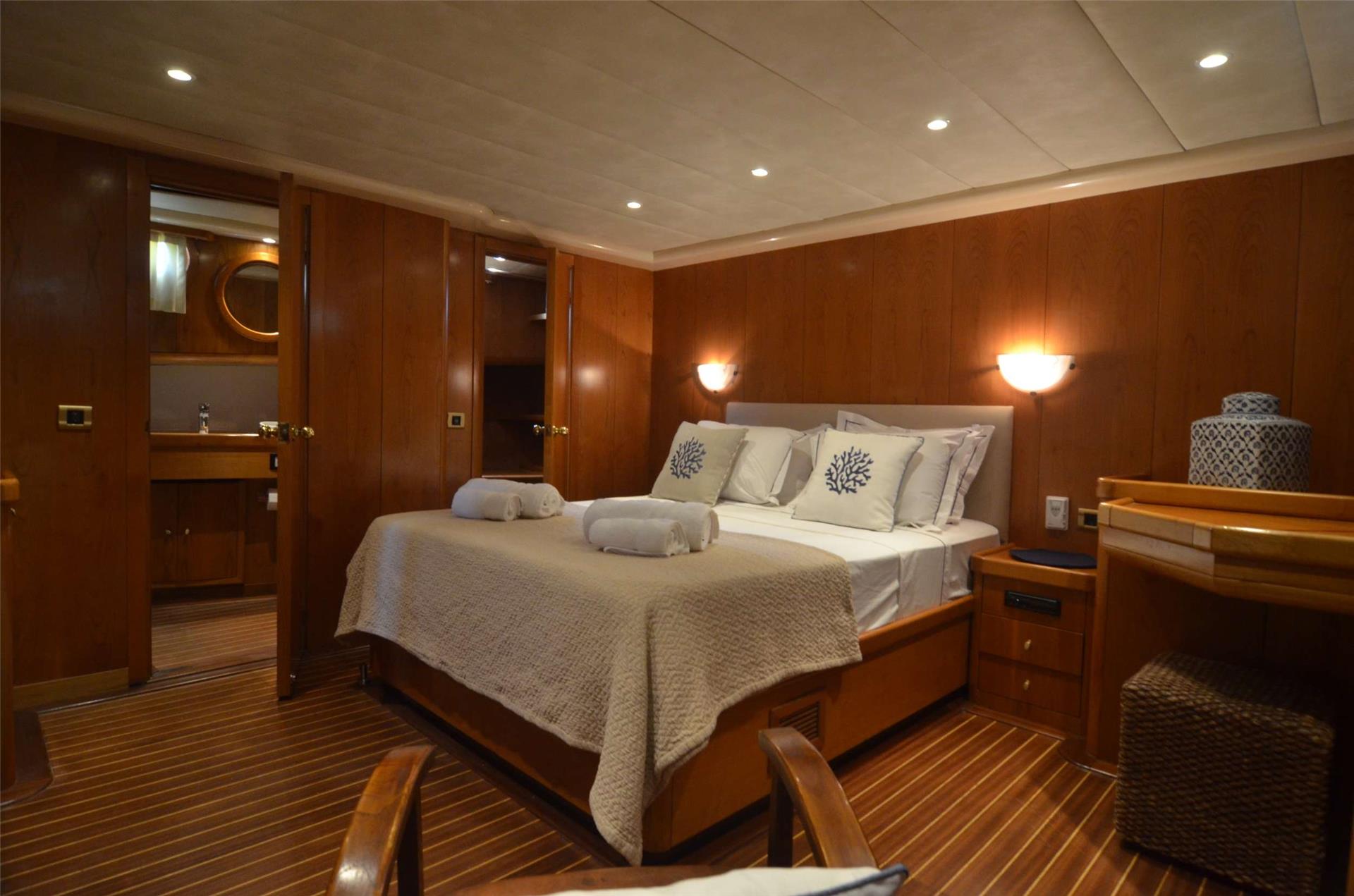 One of the most fascinating Gulets in the whole Mediterranean, Aegean Schatz. She can accommodate up to 10 guests in five large and elegant cabins, each with its own private bathroom. The crew, always keen to the tidiness, hygienic and cleaning on board, is a guarantee for a dream cruise along the Greek islands and Turkish coasts.