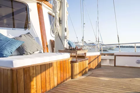 Step aboard COSMOS, a traditional wooden vessel where timeless craftsmanship meets modern indulgence. Designed with an elegant elliptical stern and built from the world’s finest materials, COSMOS is more than a yacht — it’s a sanctuary of harmony, calm, and understated opulence.