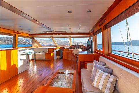 Saloon with A/C, bar, lounge, dining area for 8 guests