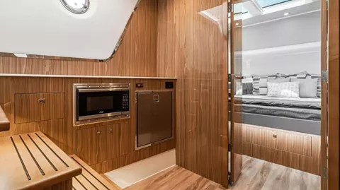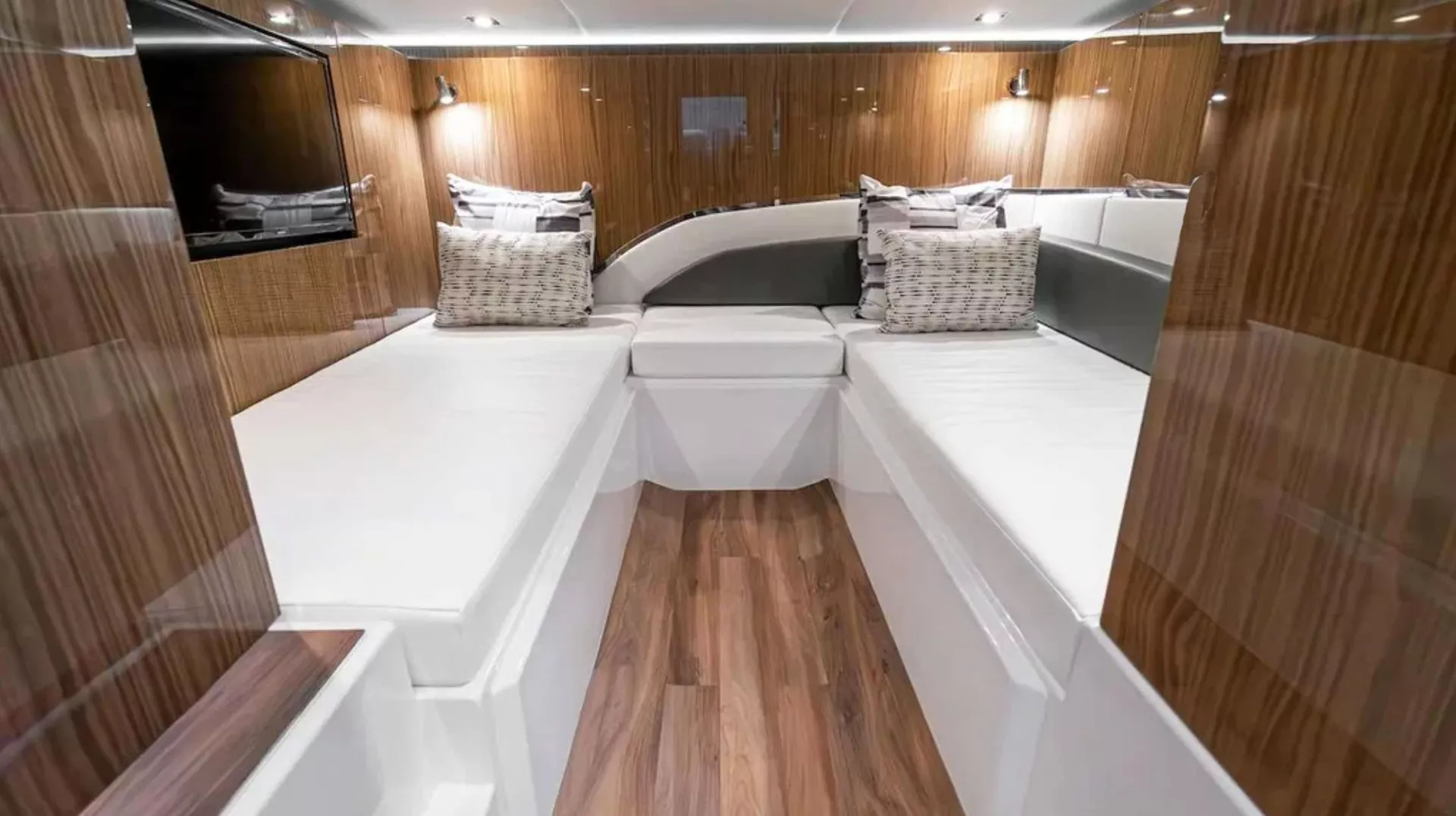 • Lower lounge cabin with convertible seating and flat-screen TV