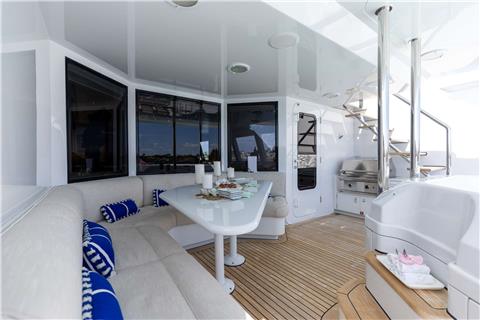 With four staterooms accommodating up to 8 guests, LANIDA offers a versatile layout ideal for families or groups of friends. There is a 5th bonus room that can function either as a guest cabin or a gym, depending on your clients' needs. With flexible sleeping arrangements and a thoughtful layout, this yacht is ideal for guests seeking versatility and exceptional comfort. Her timeless lines, elegant interiors, and warm, inviting spaces create the perfect setting for relaxed luxury at sea.