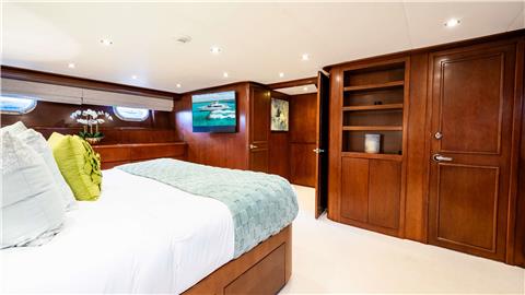 Starboard VIP - Queen bed with head against port bulkhead. Ensuite has a single sink and shower.
