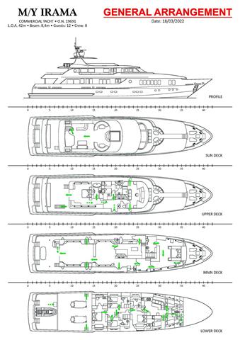 IRAMA is a 42m (137') luxury motor yacht by Concept Marine, based in the South of France and Sanremo. She accommodates up to 12 guests in 6 spacious cabins, including a full-beam Master Suite on the main deck and a VIP cabin with direct outdoor access on the upper deck, and 4 cabins located on the lower deck.