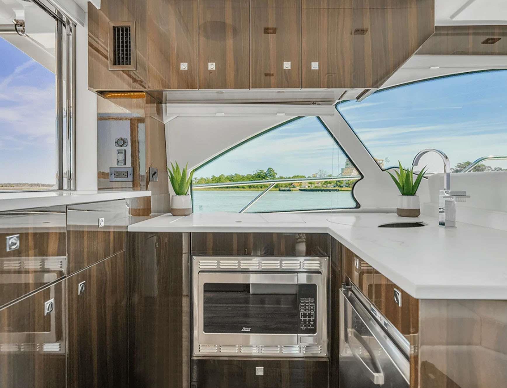 FOR TERM CHARTER: Though the boat has 3 staterooms, there are no crew quarters. So either the guests can sleep in two of the staterooms that have queen size beds, or they can put the crew up in a local hotel and use the third stateroom that has over and under beds.