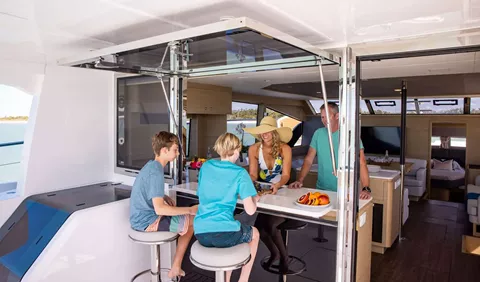 Perfect for exploring the Greek islands in ultimate comfort, the Aquila 54 will be available for charter starting 2026, delivering a premium yachting experience for families and groups seeking space, stability, and seamless service onboard. Whether anchored in a quiet bay or underway between island destinations, guests will enjoy a smooth and spacious ride with panoramic views, gourmet meals, and personalized attention from a dedicated crew.