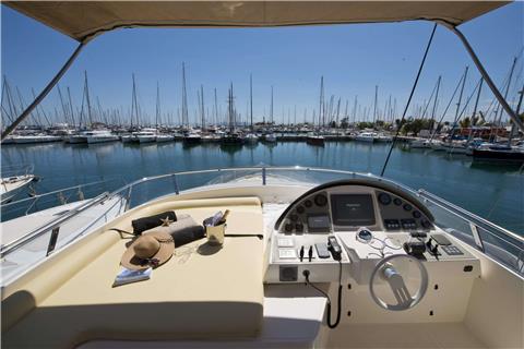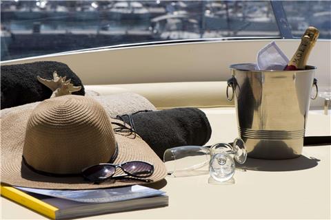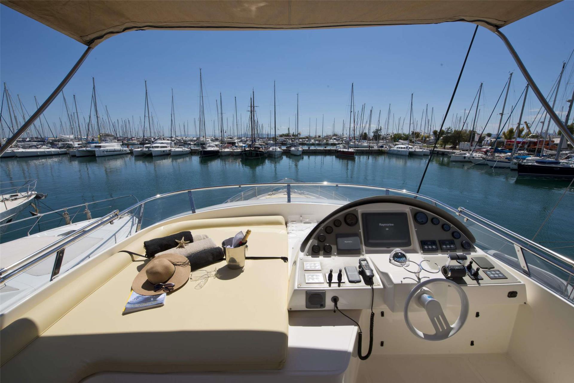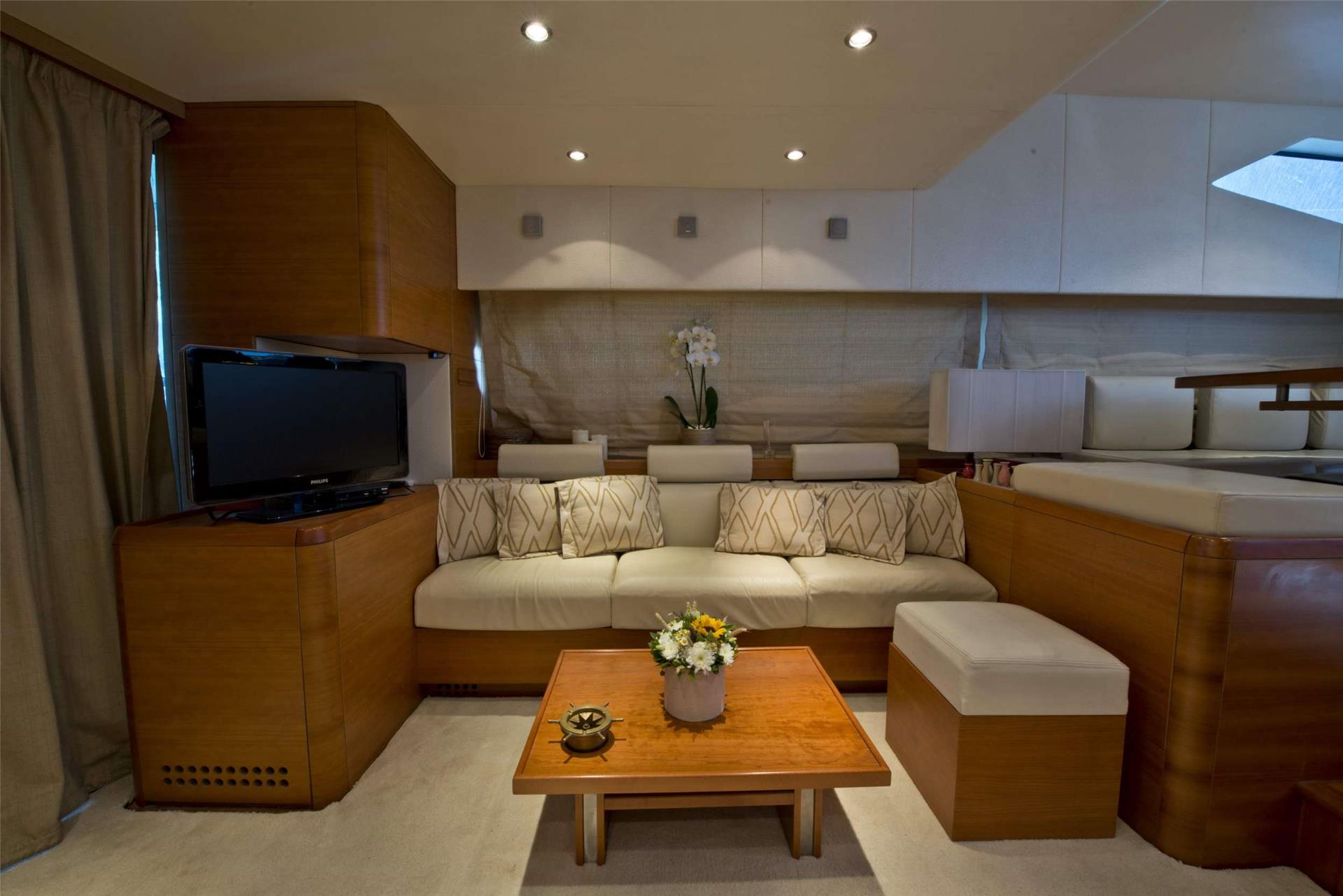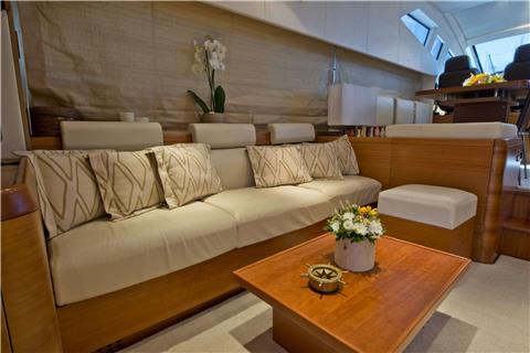 The Master cabin is amidships and full beam of the yacht, with a center lined queen size bed, sofa, vanity, walk in wardrobe and en-suite facilities.