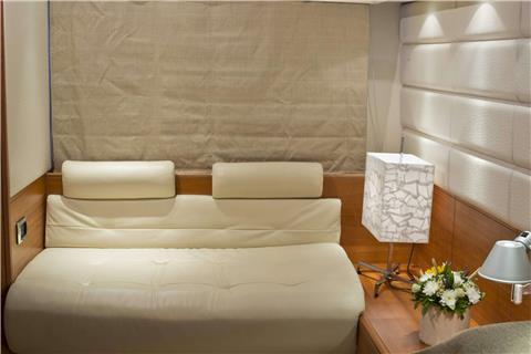 Forward and full beam of the yacht is the VIP cabin, offering a center lined double bed and en-suite facilities.