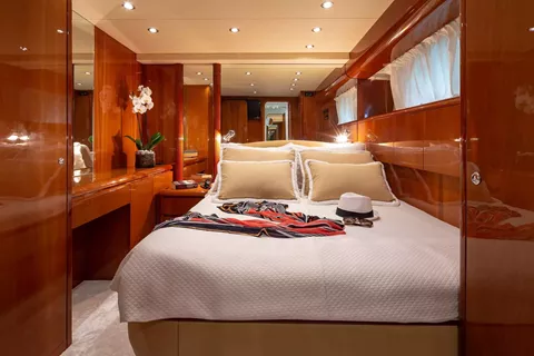 M/Y EFMARIA is a stylish and elegant Falcon 86 that combines timeless design with excellent cruising performance. Fully refitted in 2022, partially refitted in 2024, and beautifully maintained, she offers a warm, contemporary interior with large windows and generous living spaces. Accommodating up to 11 guests in five ensuite cabins—one Master, three Double, and one Twin with a Pullman—she is ideal for families and groups of friends seeking comfort and luxury.