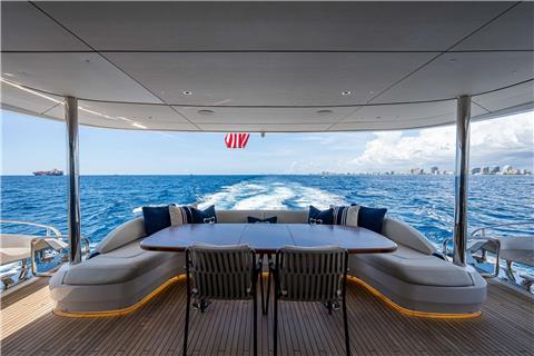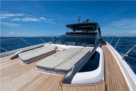 Outdoor living is a key focus aboard R&R, with a spacious flybridge featuring lounge seating and sun pads, an inviting aft deck for alfresco dining, and a hydraulic swim platform that allows easy access to the water. With smooth performance, excellent stability, and a shallow draft ideal for island cruising, R&R is a refined, charter-ready yacht that delivers both style and versatility.