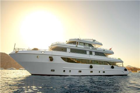 Designed with divers in mind, South Moon One offers a large dive deck with individual gear stations, Nitrox capability, compressors, and two support tenders for easy access to dive sites. Operating primarily from Sharm el-Sheikh, the yacht visits iconic Red Sea locations such as Ras Mohammed National Park, the Straits of Tiran, and the legendary SS Thistlegorm wreck.