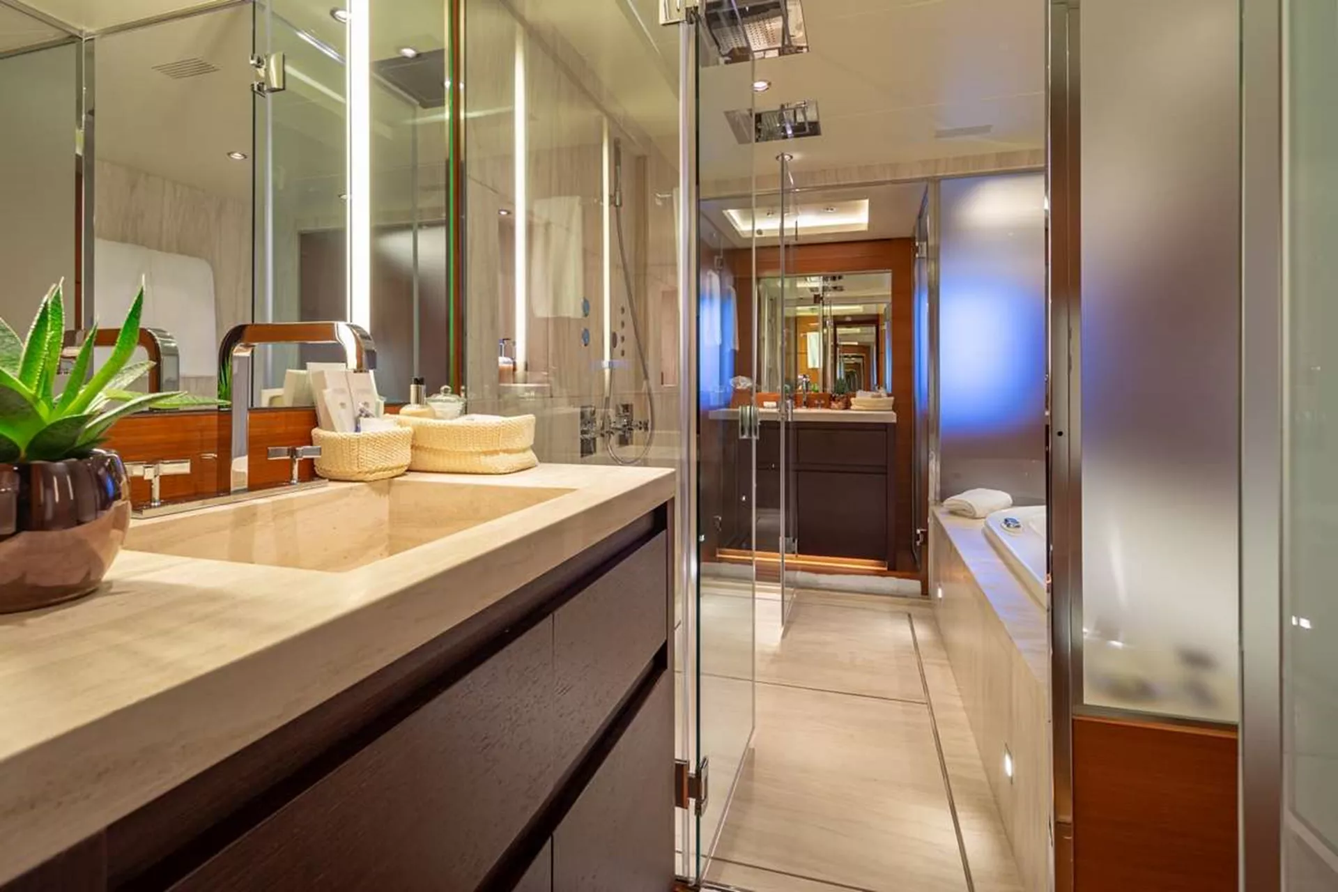 One master cabin with a king size bed, his and hers bathroom, jacuzzi, shower, steam bath & walk in closet. A private lounge area with an office, wine cellar and cigars humidifier & a private deck area.
