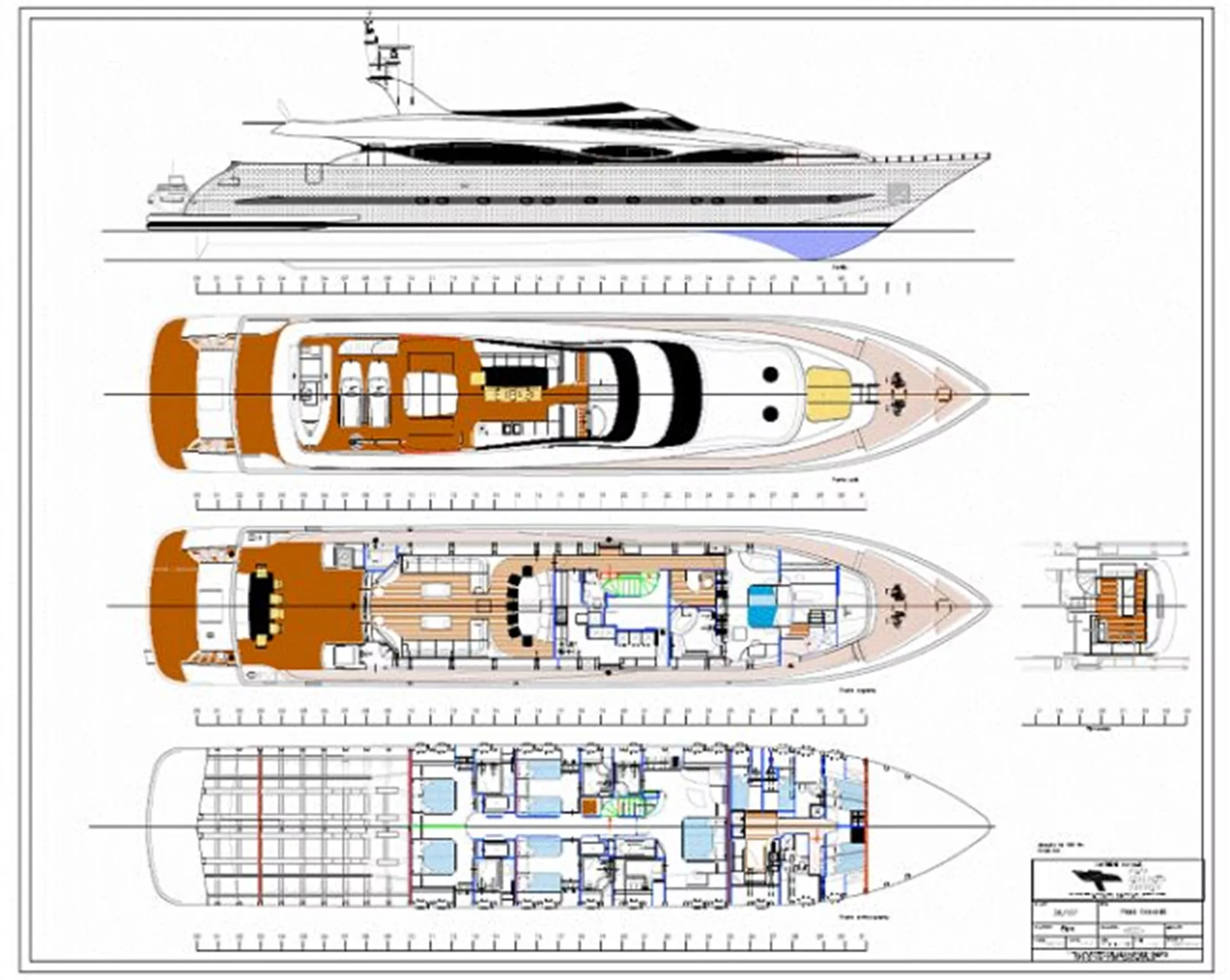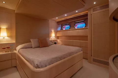 One Master with jacuzzi, two Double and two Twin cabins with pullman berths each and ensuite facilities on the lower deck