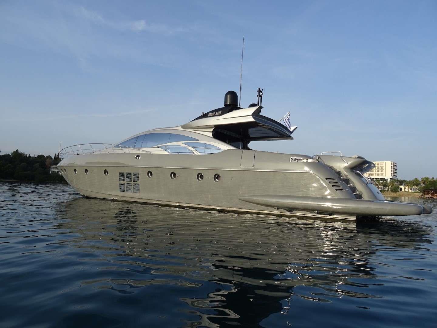 This 86ft /26,20m motor yacht was built in 2005 by Azimut and lastly refitted in 2022. She can accommodate up to eight guests in her four elegant en-suite cabins. Perfect choice for Ionian charters as she is based in Corfu. She offers a vast variety of water toys including Tender ZODIAC PROJET 350, Seabob, Water Skis Adult, Snorkeling Equipment, Tubes, Banana, 2 stand up Paddles, 2 Sea Scooters Aqua (and Jet Ski Sea-Doo Spark upon request). Her four crew members will do every effort to meet all your wishes.