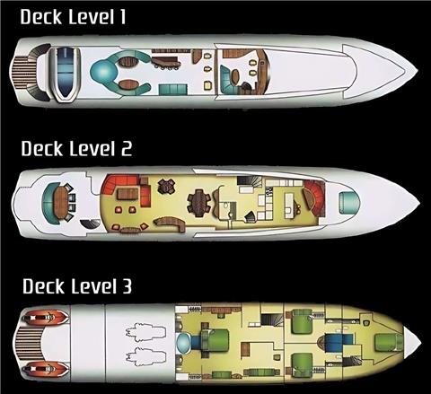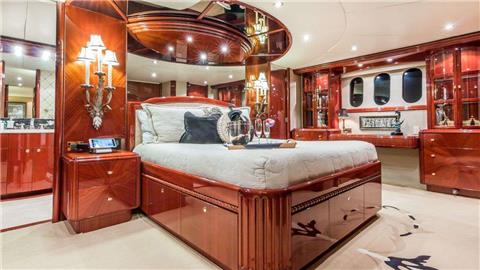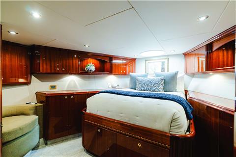Comfortably sleeping 8 in an exceptional 4 x stateroom layout that features an exquisite master suite and three VIP suites. The master has an ADJOINING study which may be used as an additional cabin. Crew quarters are located in aft and accommodate 4.