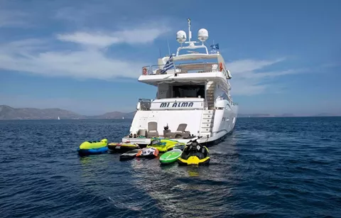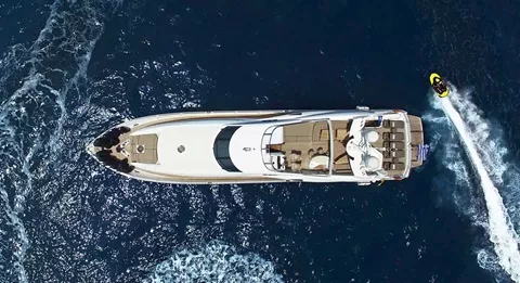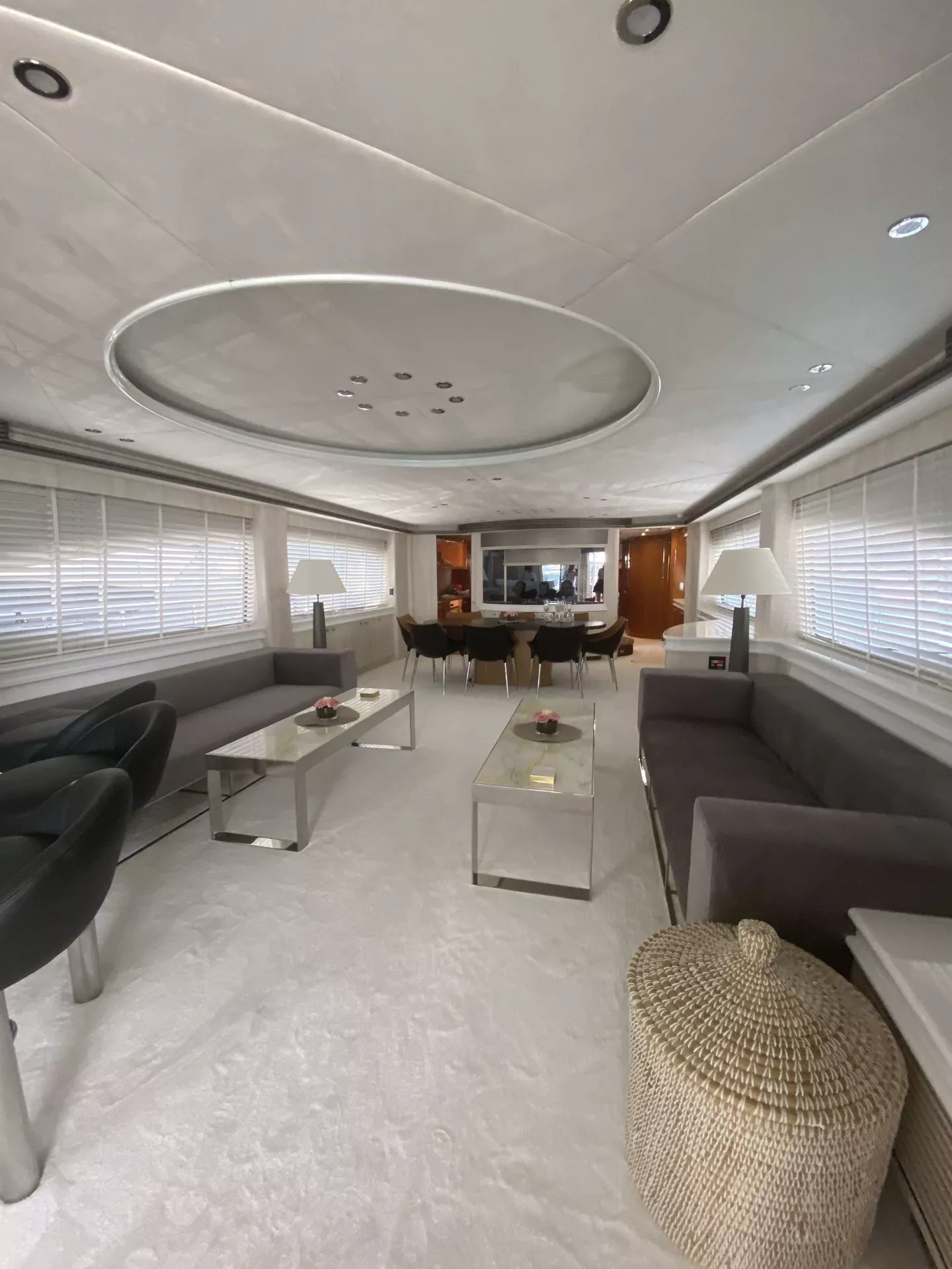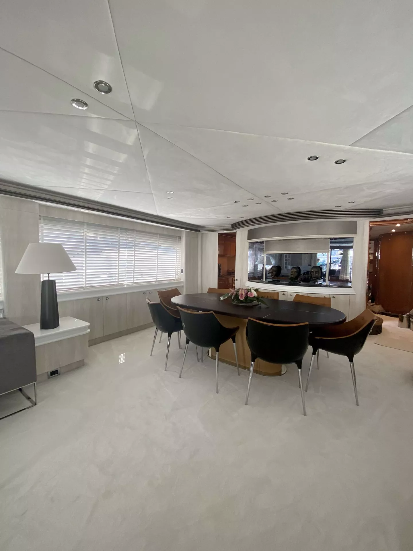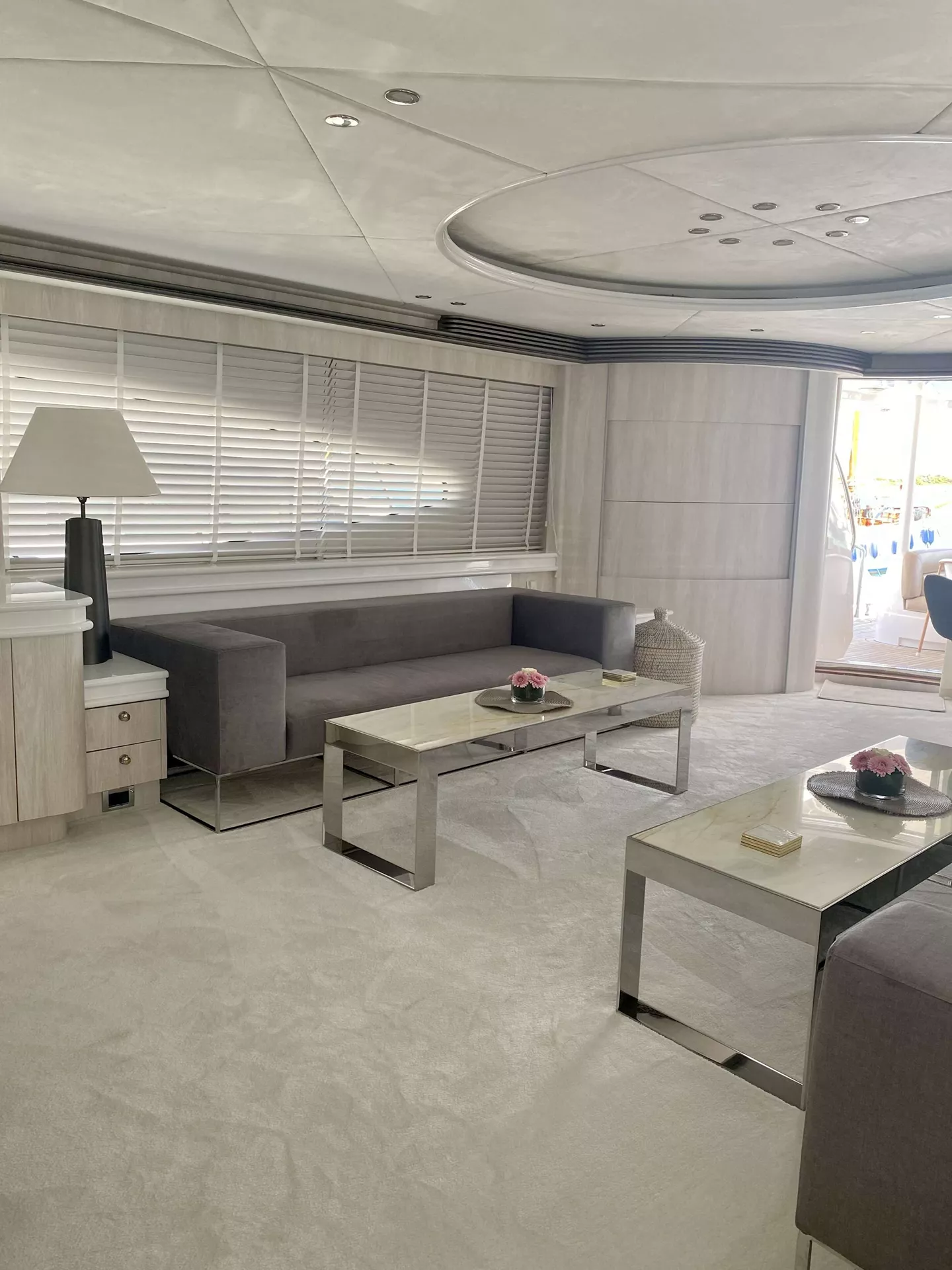1 large 3 level Master stateroom on the Main Deck with mid level dressing area with separate toilet room and an open bathroom on the lower level with tub and his & hers sinks.