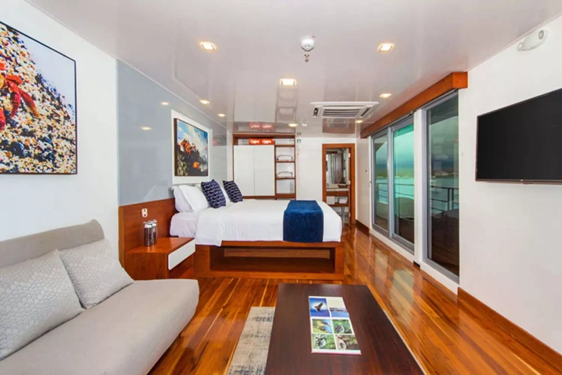 All cabins with private balconies, hot water and air-conditioning