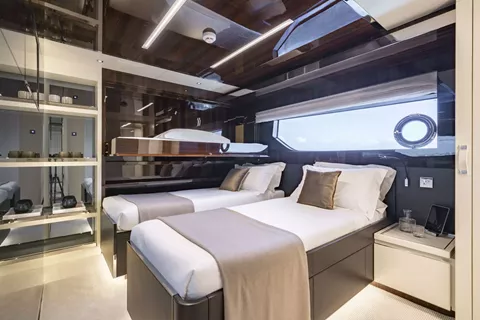 • Master on main deck, 2 x VIP, 1 x double, 1 x double/twin convertible with extra pullman berth