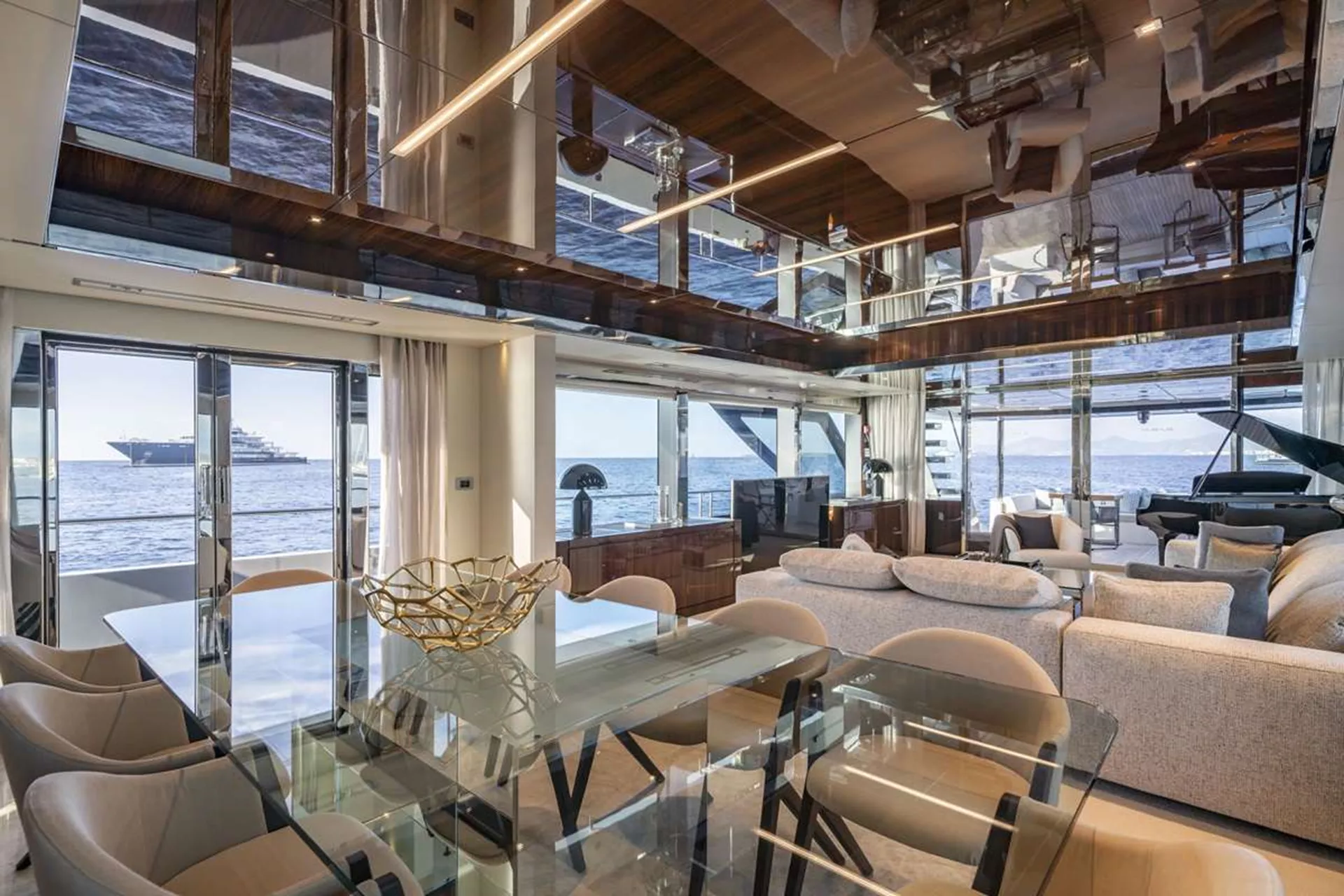 • Baby grand piano in main saloon