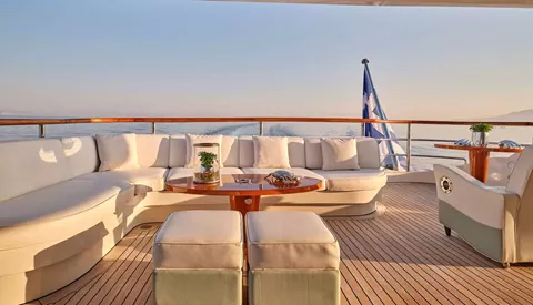 Manos began his career at sea on board commercial ships and later joined the yachting industry in 2012 as second officer, working his way up to the position of Captain on Sunday, where he has been onboard since 2016. He holds all relevant certificates, such as Ro/Ro & Passenger Ship Safety, Life Saving & Fire Fighting, ISPS Certificate (International Ship & Port Security) and a speedboat license. His love for the sea and for all water-related activities enables him to offer an array of activities with his very competent water sports-orientated deck crew. Manos has a vast knowledge of the Greek waters ensuring an unforgettable experience for his charter guests.
