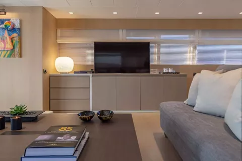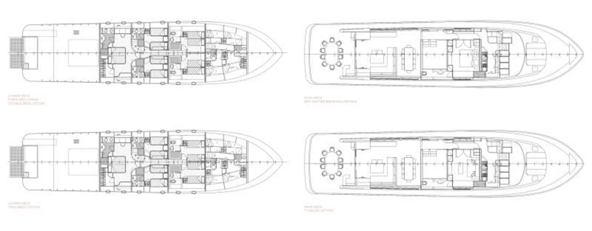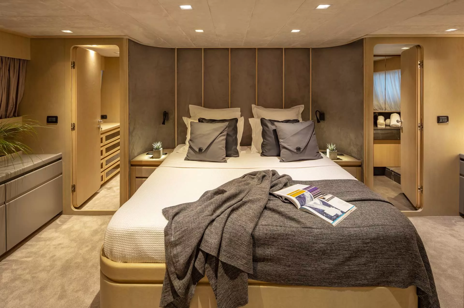 12 guests in 1 Master Suite, 1 VIP on the Main Deck convertible into a Playroom and 4 Twin Cabins all convertible to double (upon request). All cabins with en suite facilities