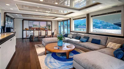 Winner of numerous awards including ‘Most Achieved Boat’ at Cannes Boat Show, Esmeralda of the Seas exceptional space over 3 decks featuring five beautifully-appointed cabins including a master suite on the main deck and four cabins below-deck. Both twin cabins are convertible allowing flexible accommodation of up to five doubles.