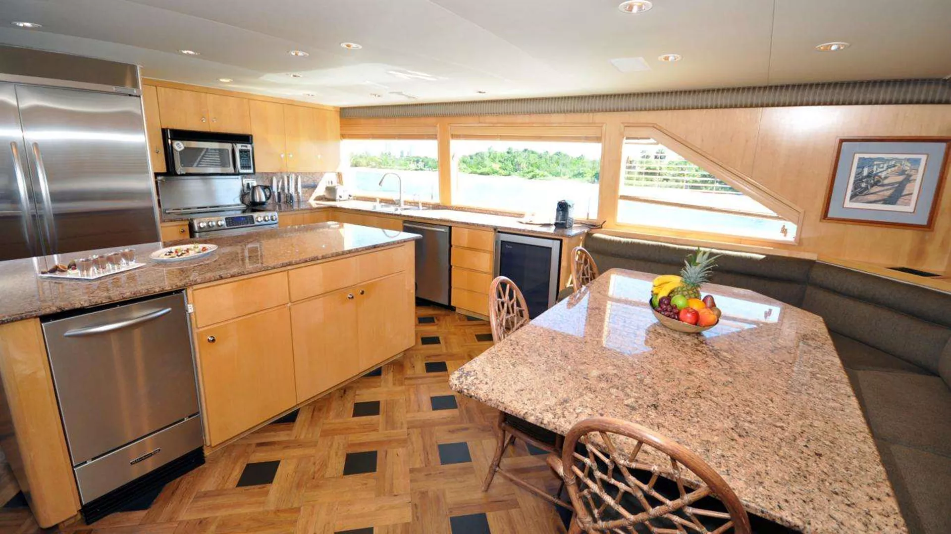 LUCKY STARS accommodates 8 guests in 4 staterooms. VIP Queen forward stateroom with en suite bath, King Master stateroom with His and Hers bath, Queen guest stateroom and one twin stateroom both with en suite baths.