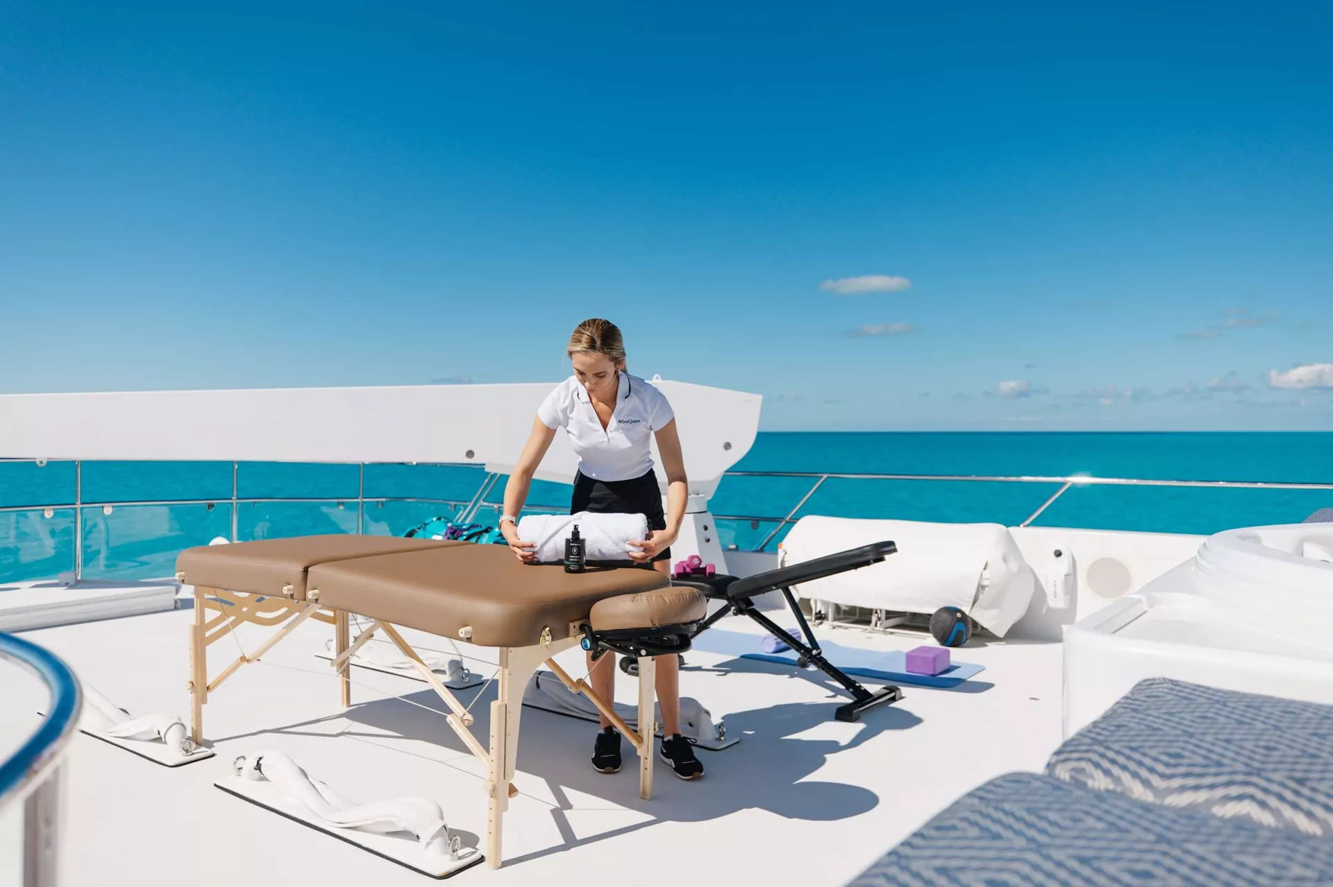SEAQUEST welcomes up to 10 guests in five generously sized staterooms designed for comfort and luxury. The on-deck master suite features a king bed and a full-beam His and Hers bath, complete with elegant marble finishes, a spacious shower, and a relaxing Jacuzzi tub.