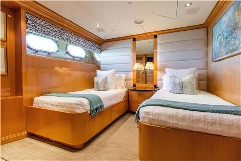 SeaQuest accommodates 10 guests in 5 spacious staterooms. The on-deck master stateroom as a king bed, full width His and Hers bath with marble shower and Jacuzzi tub. Below deck there four guest staterooms to include two VIP Queen staterooms aft to port and starboard. Forward, is an additional Queen stateroom and to starboard is the twin stateroom to port. All guest staterooms have an en-suite bath.