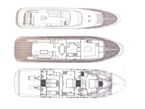 The lower deck houses the sleeping area divided into: a master cabin with a large double bathroom; a VIP suite with private bathroom; one double cabin with separate beds, all cabins are equipped with ensuite facilities.