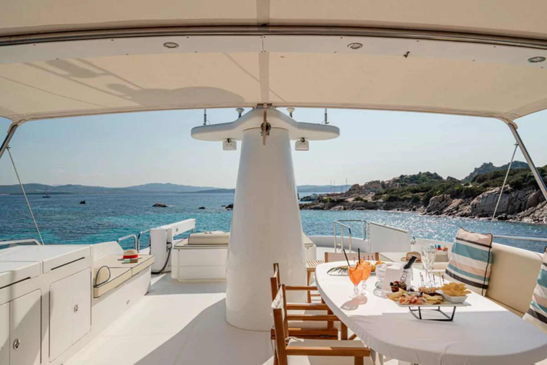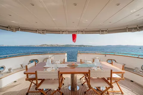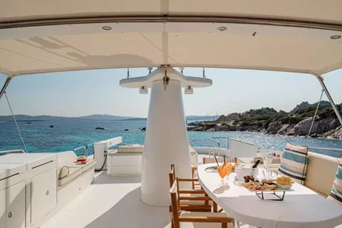 The most enjoyable outdoor area of the yacht is definitely the sundeck, equipped with solariums, an additional outdoor dining option for 12 and a kitchenette with wetbar and grill.