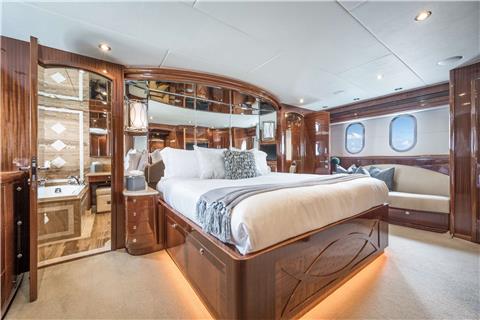 Master Stateroom has a walk in shower and tub, with a his and hers en-suite.