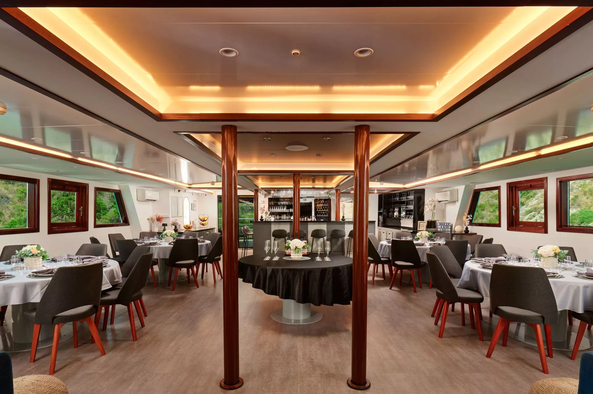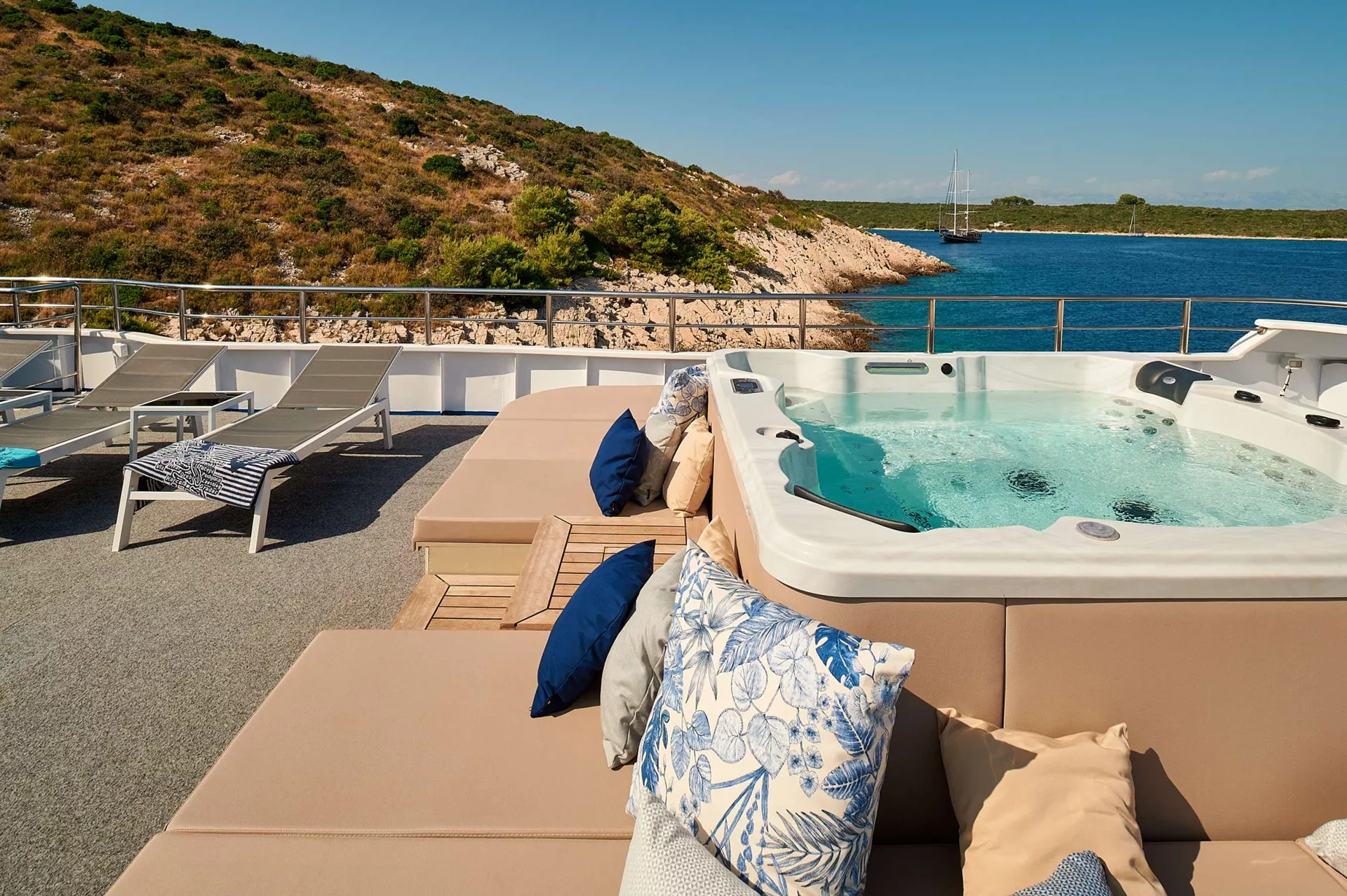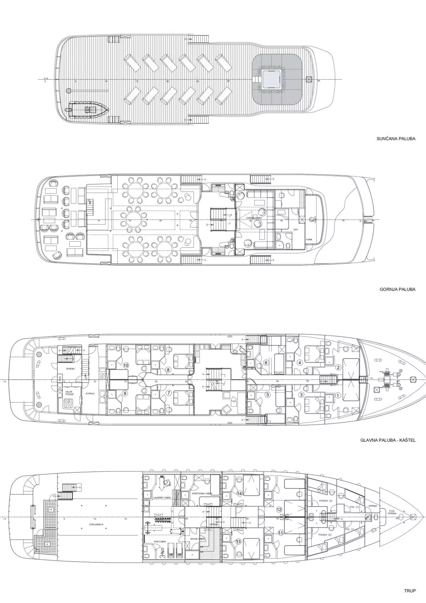 Hosting up to 34 guests*, the yacht consists of 15 modern en-suite cabins, vast & elegant interiors filled with numerous amenities such as SAUNA, GYM & CINEMA ROOM and large outside spaces equipped with jacuzzi on sundeck and many lounges designed for your perfect leisure time. Yacht is managed by a skilled local 10-crew team.