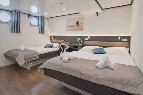 *there are 4 triple cabins with additional beds, so maximum capacity can be up to 34 guests