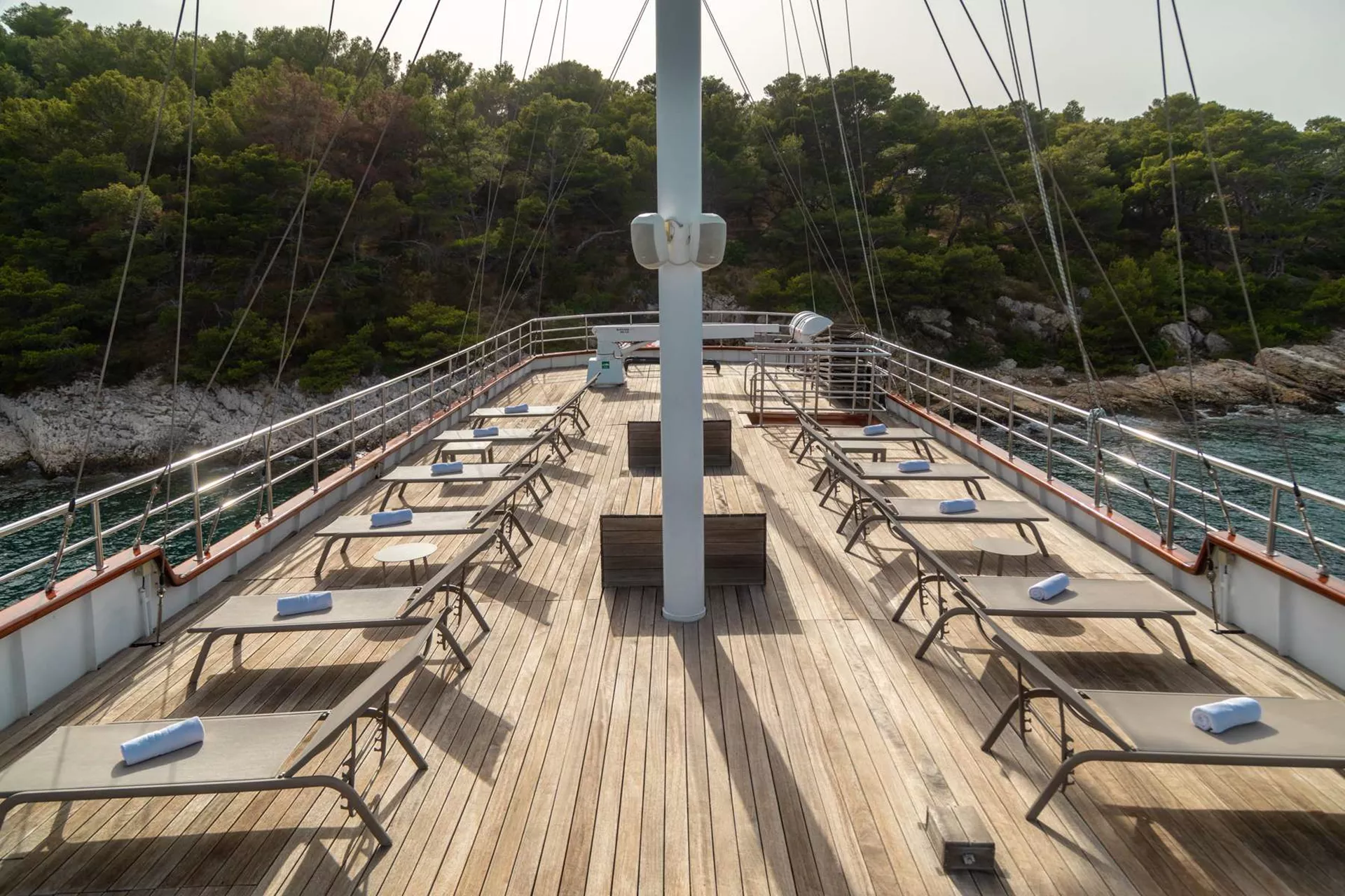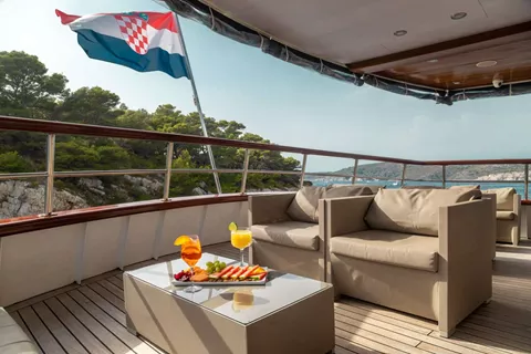 Almissa is managed by 7-crew members who are responsible for creating top-notch service on-board. Our chef & sous-chef are responsible for rich breakfasts and lovely 3-course lunches accompanied by freshly mixed cocktails by our bar staff. From stunning sundeck area to modern designed saloon area to swim platform, she is ideal yacht to enjoy with large group of friends or with family.