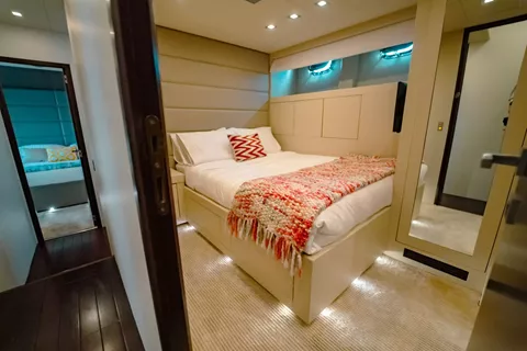 This 92' Mangusta exemplifies the meaning of Italian craftsmanship and engineering. "HOUDINI" stands out from the crowd as not only fast for its class but beautiful in its design. Always Captain and crew maintained with no expense spared for maintenance and upgrades. With an excellent layout that perfectly accommodates her guests inside and out, "HOUDINI" can satisfy the most discerning yachtsman. Houdini's Kamewa propulsion system creates an environment with minimal vibration and provides a unique draft of 3.3 feet for shallow water cruising to the Bahamas.