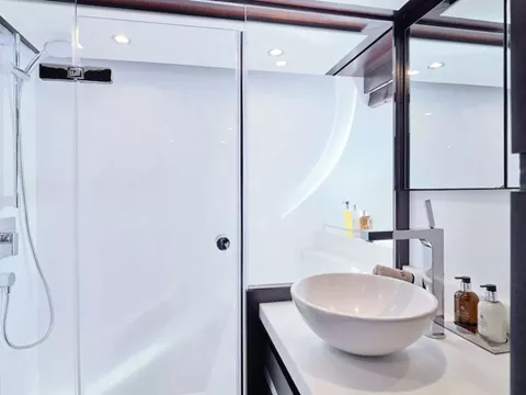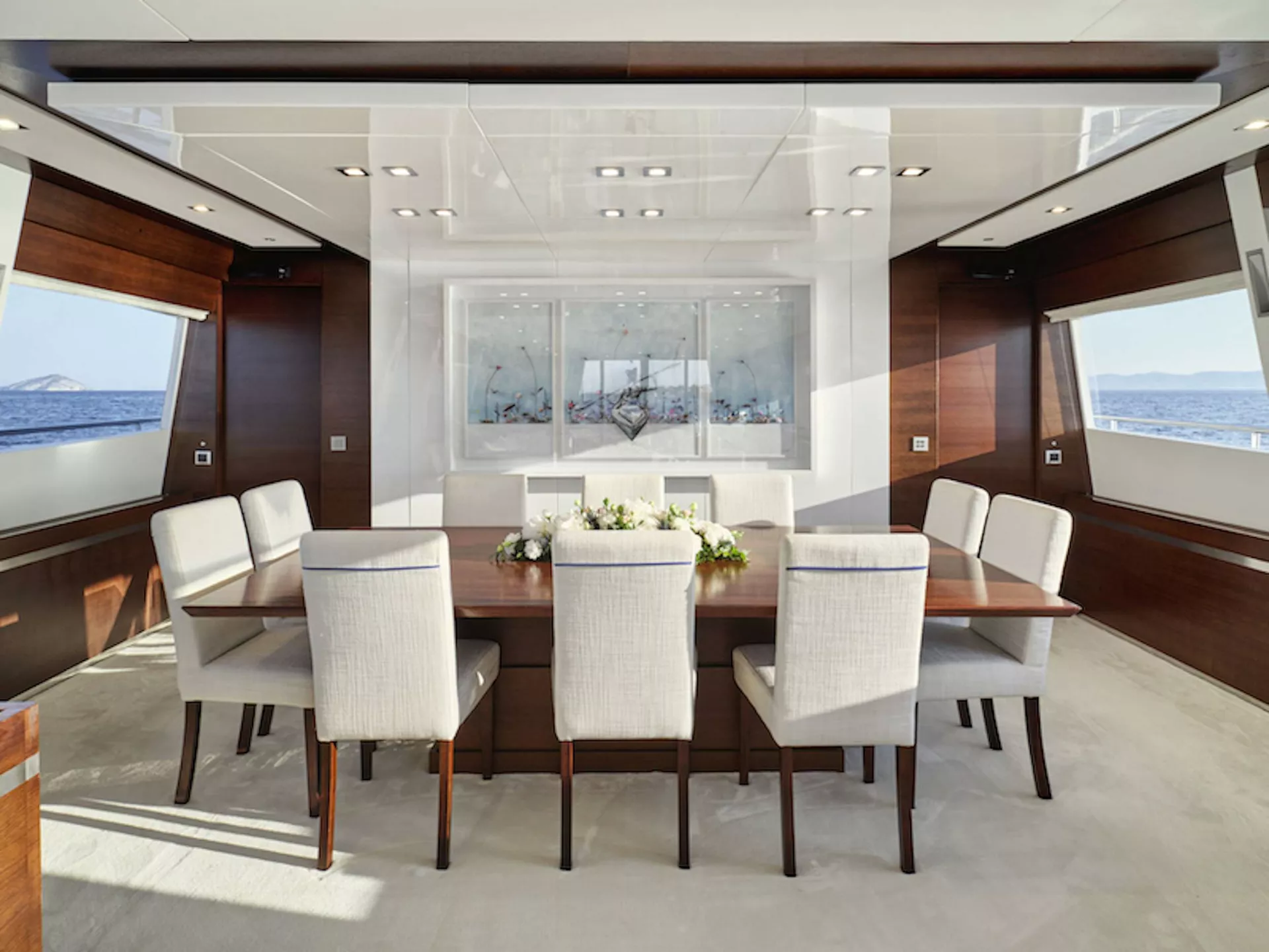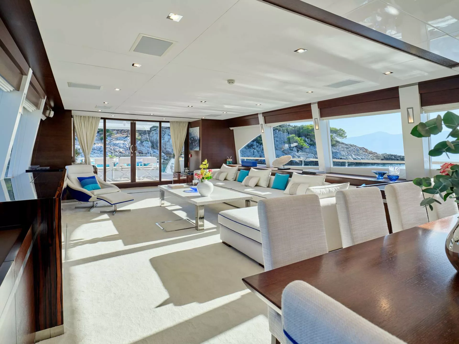 Two serene master cabins invite complete relaxation, while her stabilized cruising and impressive speed make island-hopping in Greece an unhurried delight. With four Seabobs, a Jetski, two Efoils, and more, adventure comes naturally — and with eight attentive crew, indulgence feels effortless.
