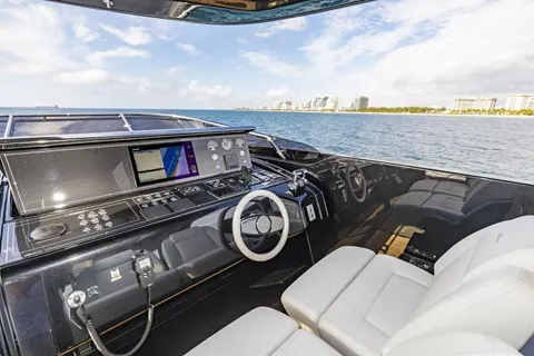 The expansive sundeck provides a great area for entertainment, offering lounge spaces and a wet bar. Alfresco dining is found on both the main deck aft and the covered flybridge. Another great feature on this vessel is the hideaway jacuzzi located on the bow which can be closed away from sight and used as a seating area, or opened up for use to truly enjoy la dolce vita!