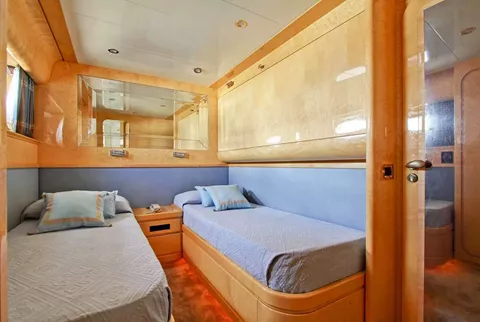 The yacht has a 4 cabin configuration designed to comfortably accommodate up to 10 guests overnight in a layout comprising a Master cabin, 1 VIP stateroom, 2 twin cabins convertible into double, both with pullman beds.