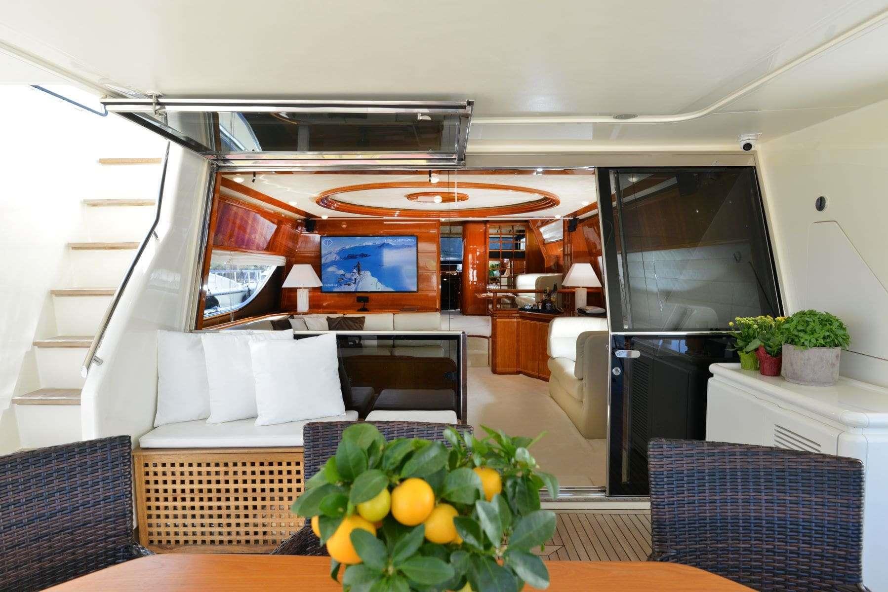 The 78.8ft /23.98m motor yacht 'KENTAVROS II' was built in 2000 by Ferretti and totally refitted in 2018. She has 4 luxuriously appointed en-suite cabins and can accommodate up to 8 guests in total comfort. She provides 1 Master Cabin with queen size bed, 1 VIP Cabin with double bed and 2 Twin Cabins with 2 single beds that can be converted to doubles. She is an ideal yacht for family charters as she has a very accommodating and children friendly crew.