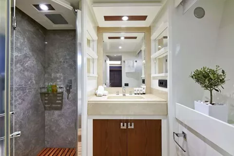 The 88ft/26,83m motor yacht ‘La Fenice’ was built in 2006 by Azimut and totally refitted in 2020! She is consisted by five luxurious en-suite cabins (1 Master cabin, 1 VIP cabin, 1 Double cabin, 1 twin and 1 bunk-bed cabin) and can accommodate up to ten guests in total comfort. She is featured by elegance, space, agility and light flooding through large windows. She is based in Corfu, ideal starting point for an Ionian cruise. She offers a jacuzzi on deck as well as a wide variety of water toys including new Tender OLYMPIC 4.00m, Jet ski Seadoo Spark 2019, Water ski (for adults), Water ski (for children), 2 SUP, 2 Seabob F5, 2 Rings, Inflatable sofa (for 3 pax), Snorkeling equipment.