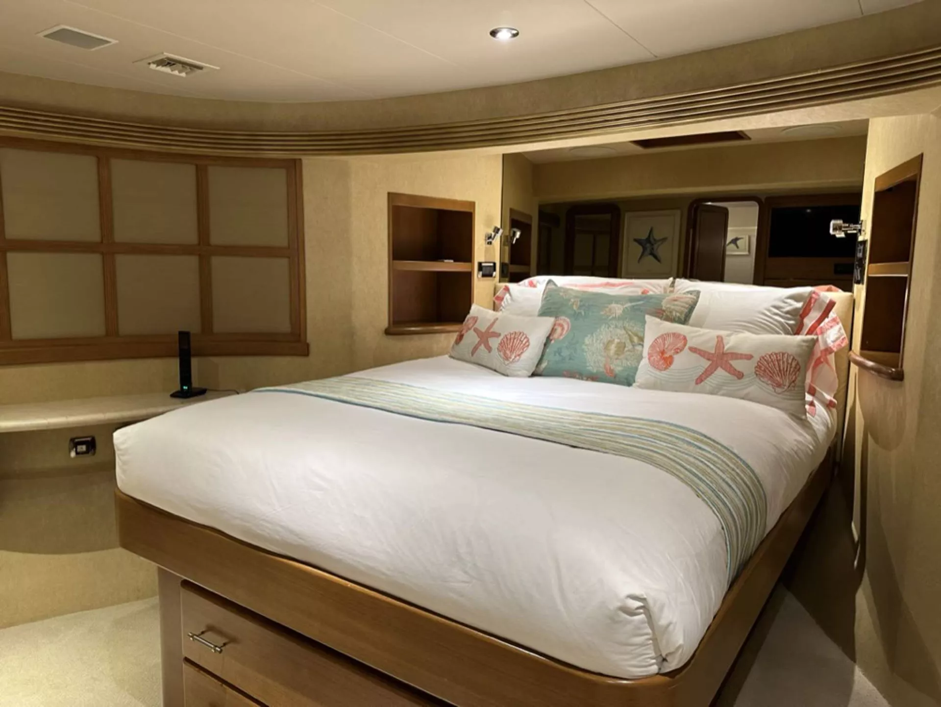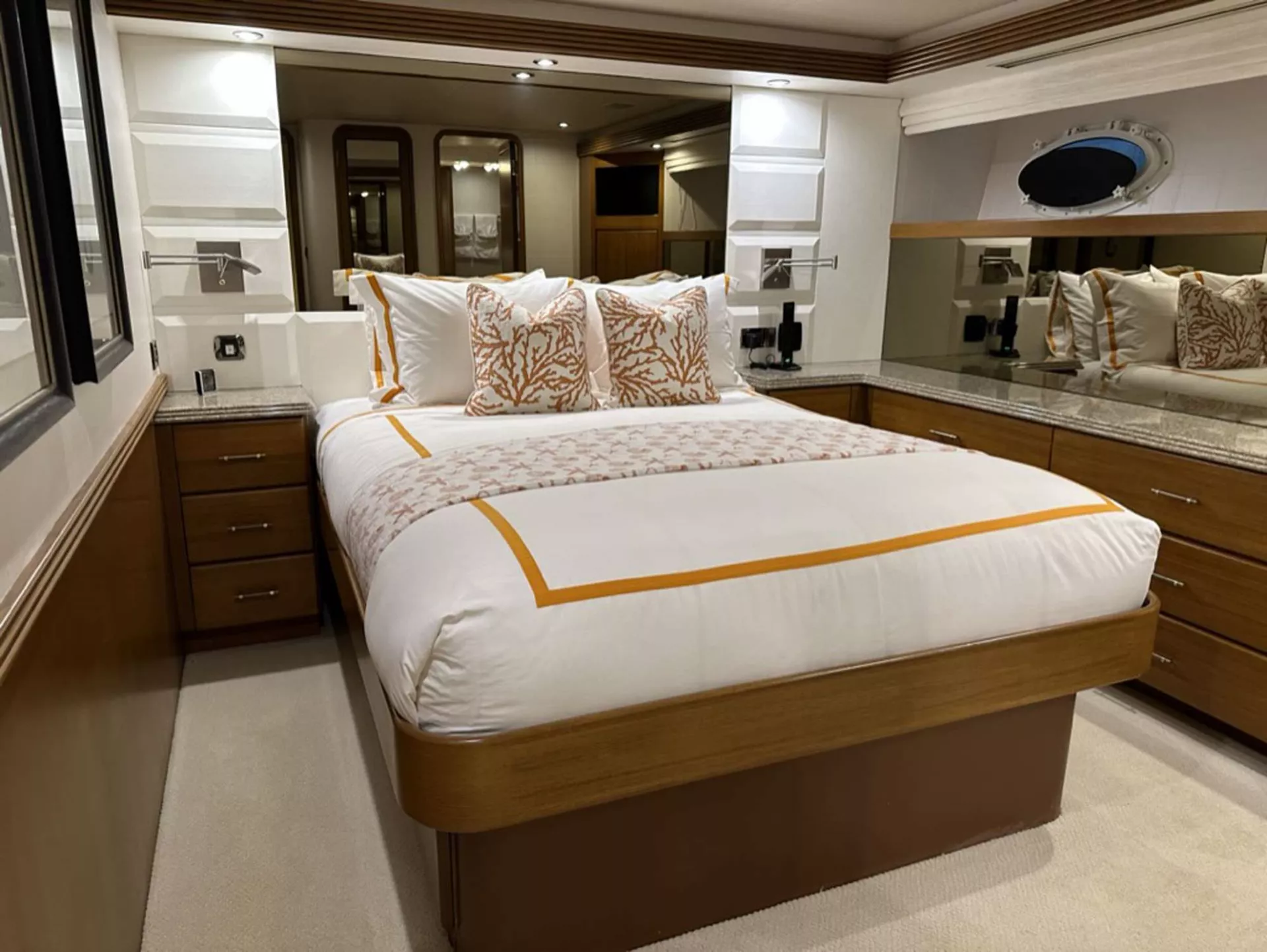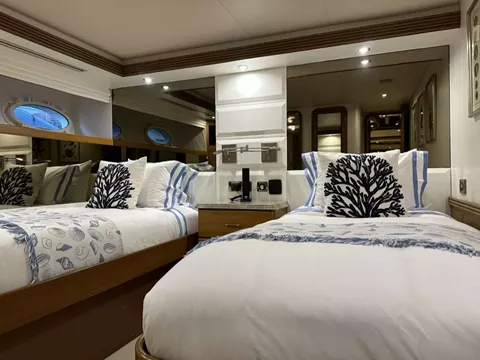 ISLAND GIRLS's interior configuration has been designed to comfortably accommodate up to 8 guests overnight in 4 cabins, comprising a master suite, 1 VIP stateroom, 1 double cabin and 1 twin cabin. She is also capable of carrying up to 5 crew onboard in 3 cabins to ensure a relaxed luxury yacht experience.